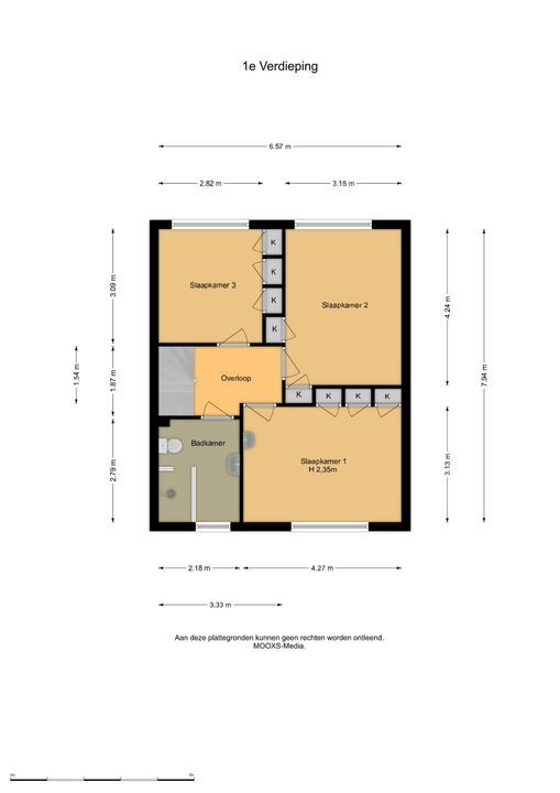 Op de eerste verdieping kom je op een ruime overloop. Vanaf hier zijn drie slaapkamers en de badkamer bereikbaar.