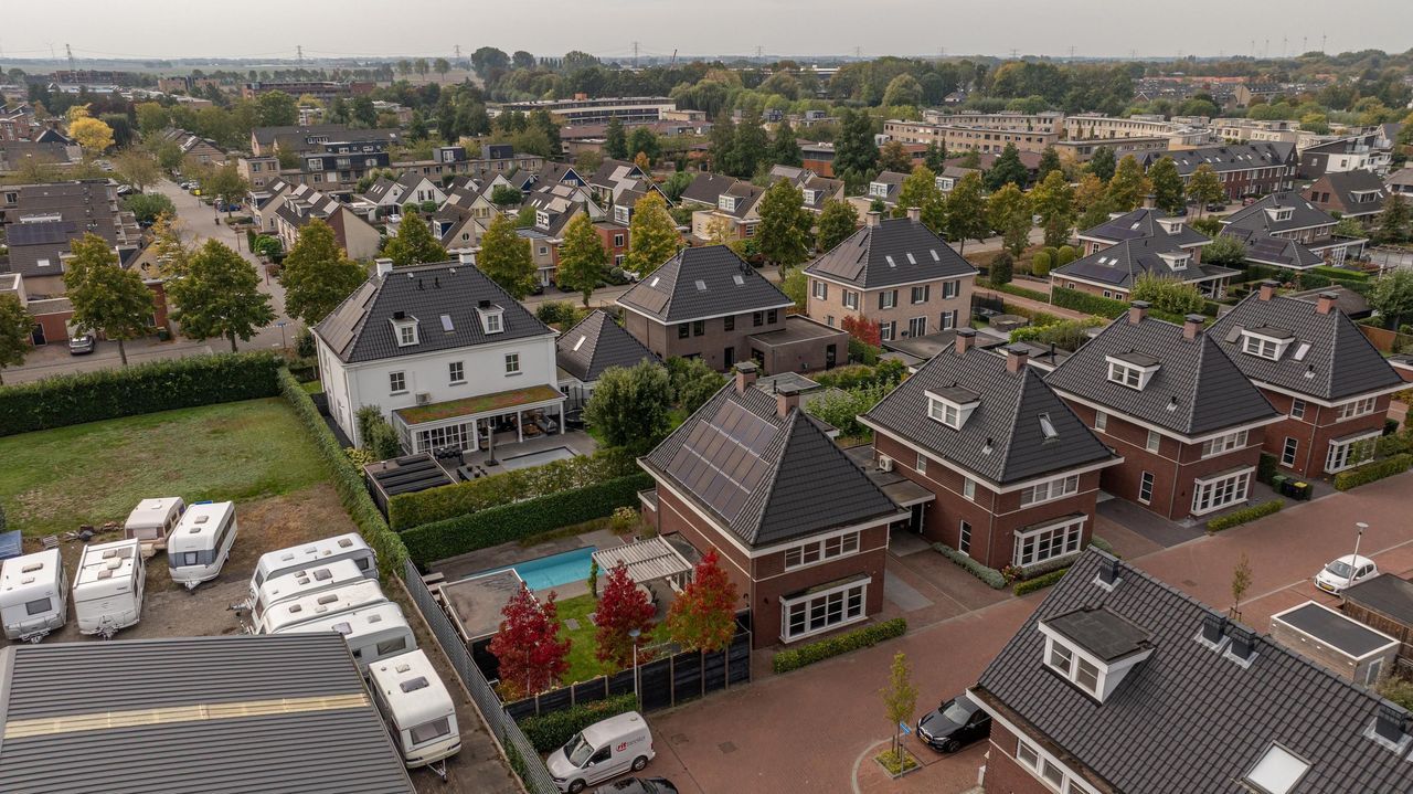 De villa maakt deel uit van een geliefde wijk, gerealiseerd door BO Wonen in de kenmerkende jaren ’30-stijl met rode bakstenen, royale overstekken, roedeverdeling in de ramen en subtiele metseldetails. Achter de klassieke gevel schuilt een moderne, energiezuinige woning met een tijdloze uitstraling. De ligging aan een rustig hof zorgt voor een veilige en kindvriendelijke woonomgeving, terwijl scholen, winkels, horeca en sportvoorzieningen op loop- en fietsafstand liggen.