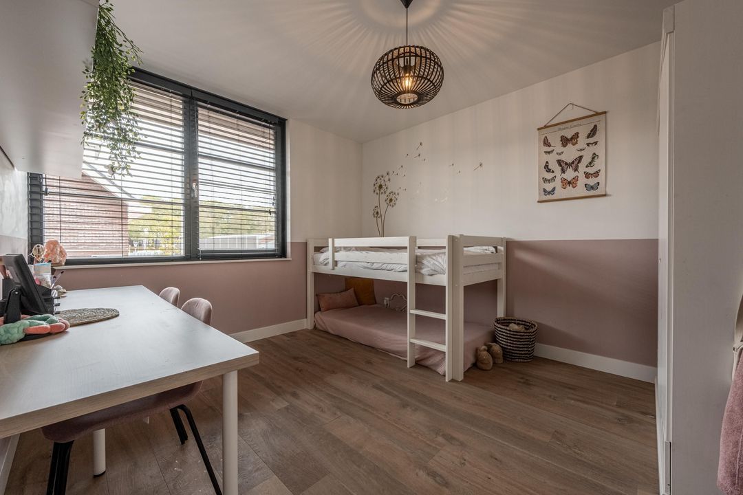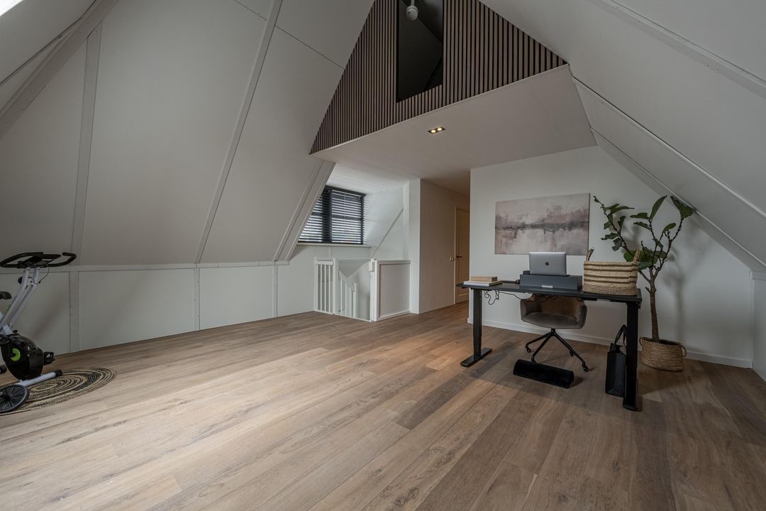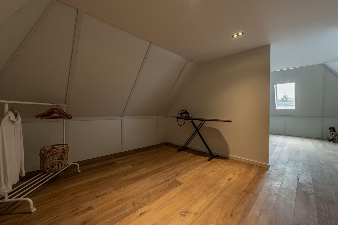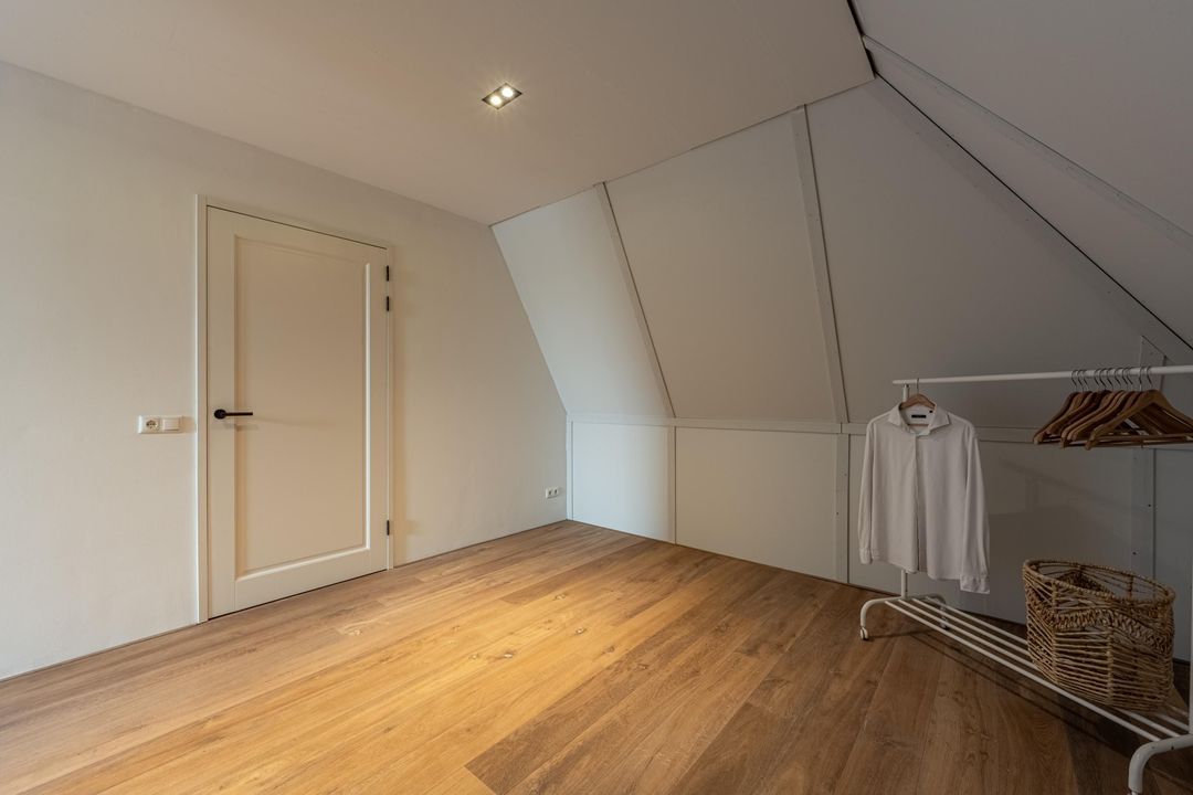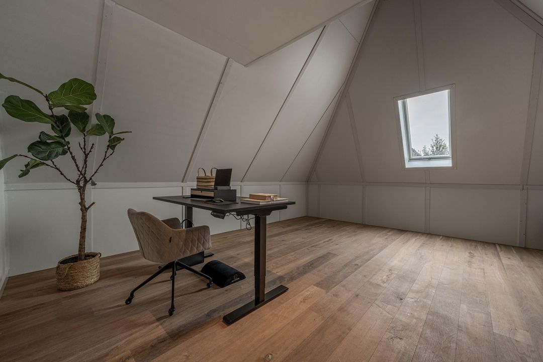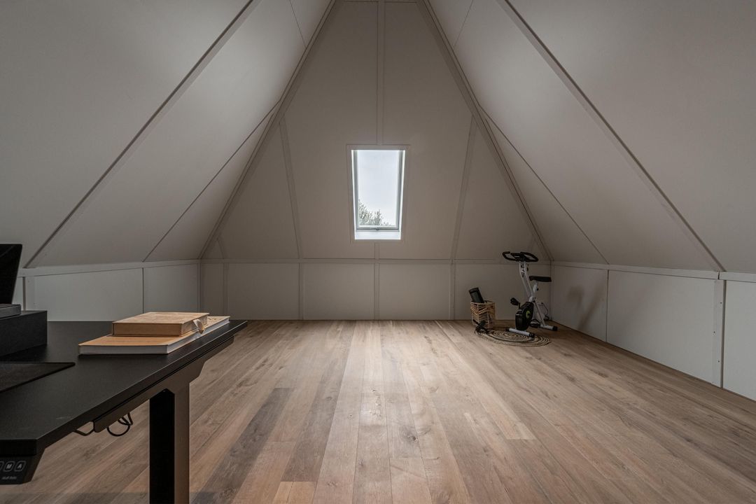 De tweede verdieping is een volwaardige woonlaag met hoog plafond, een ruime slaapkamer en een half open ruimte achter een praktische scheidingswand die zowel als logeerplek als voor wasruimte of opslag kan dienen. Daarnaast is er een technische ruimte met warmtepomp, WTW-installatie, 360-liter boiler en aansluitingen voor wasmachine en droger.