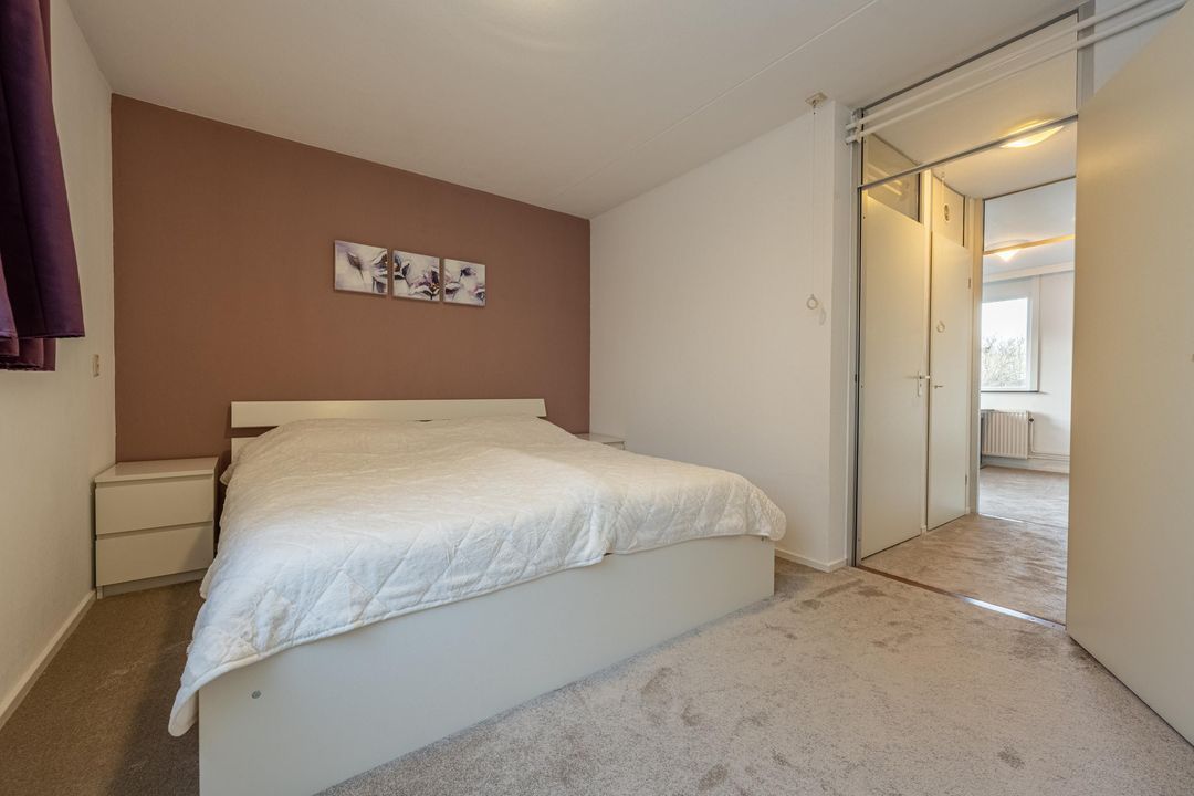De hoofdslaapkamer ligt aan de achterzijde van de woning en de tweede slaapkamer aan de voorzijde.