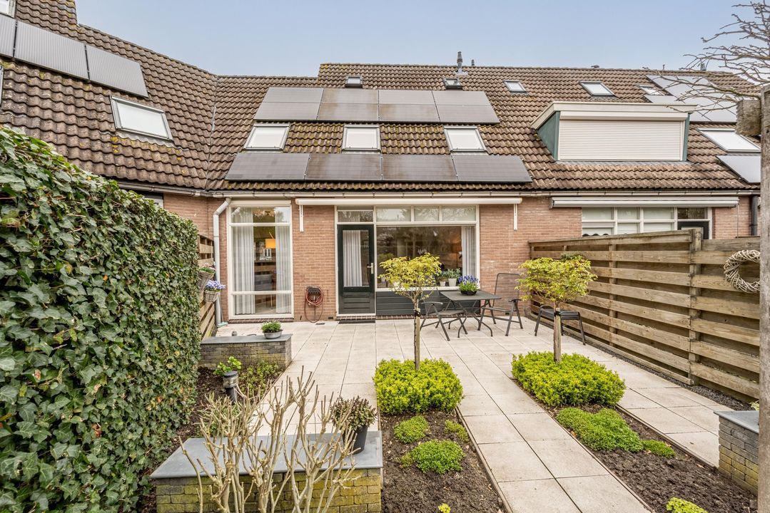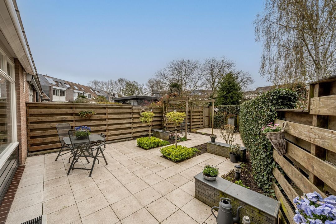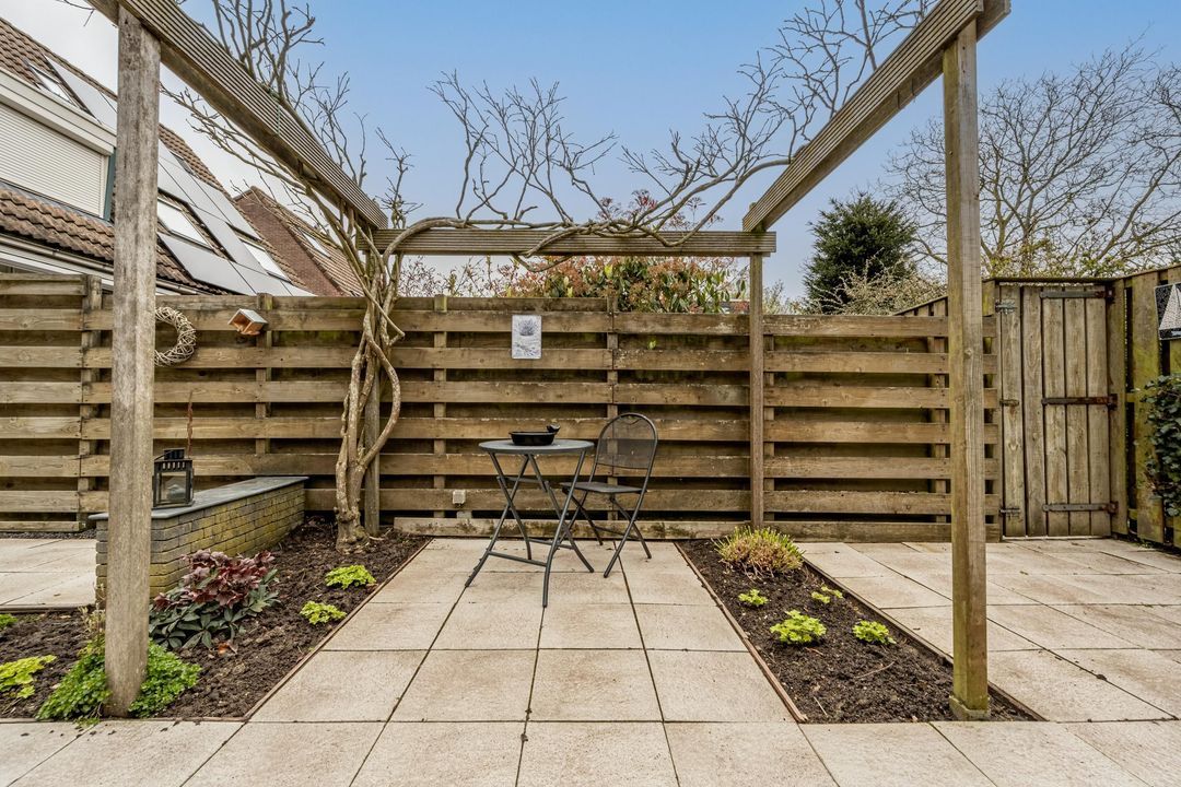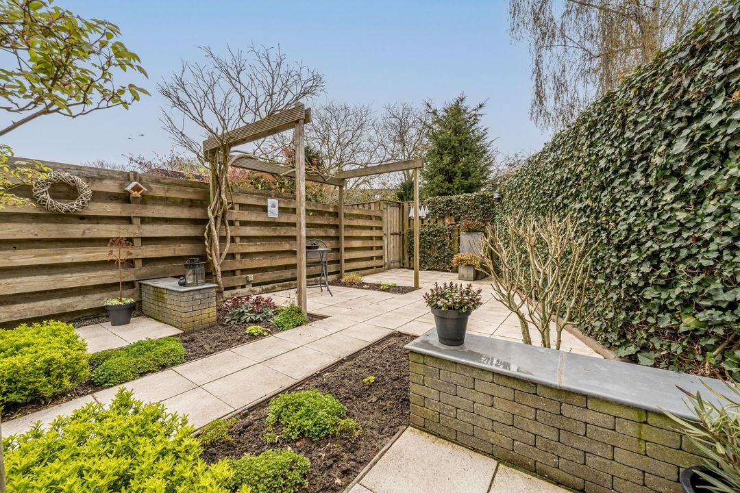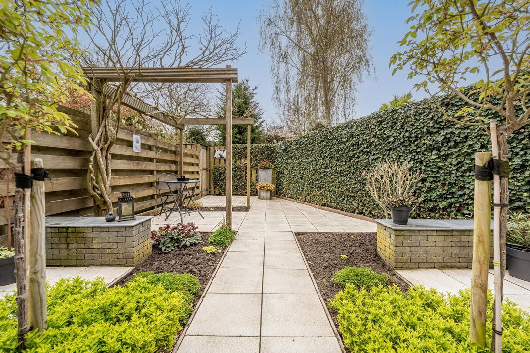 De woning beschikt over een mooie, ruime achtertuin met volwassen beplanting, diverse borders, bestrating en een sfeervolle toog begroeid met blauwe regen. De achtertuin is gelegen op het zuidoosten, wat zorgt voor een optimale zonligging en maakt dit een ideale plek om te genieten van lange, zonnige dagen en avonden. De tuin heeft een open karakter aan de achterzijde en biedt daardoor een ruimtelijk gevoel en veel privacy.