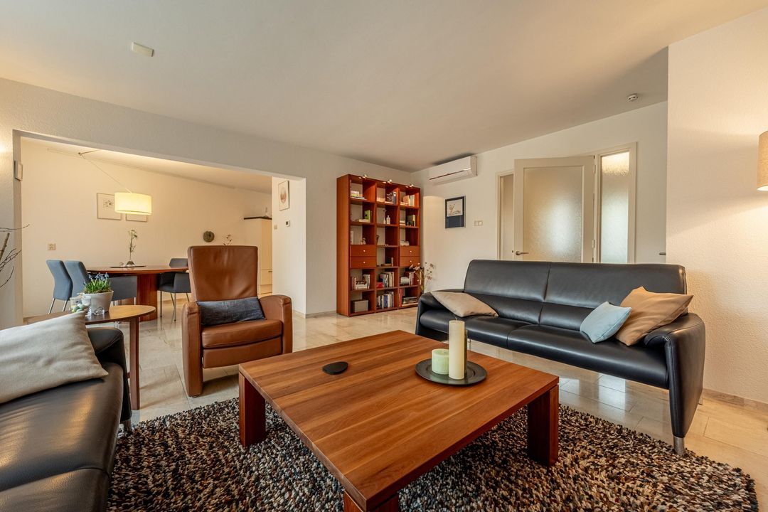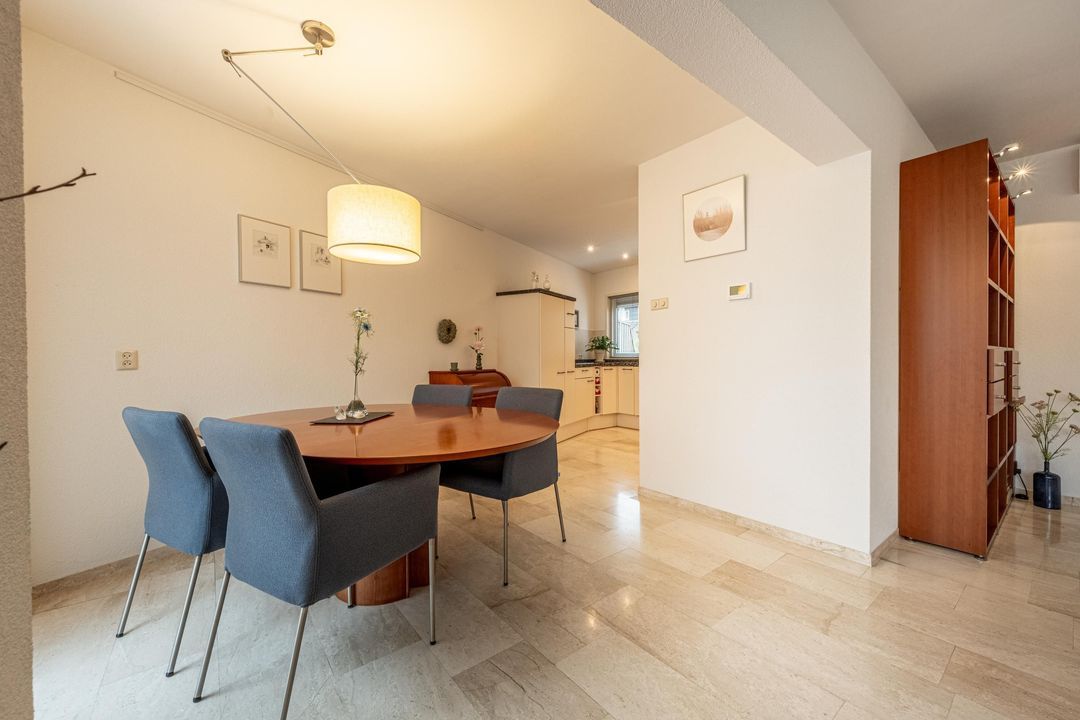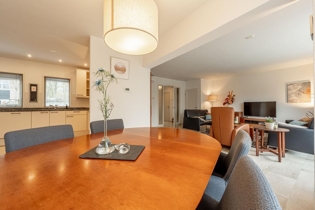De gehele begane grond is afgewerkt met een marmeren vloer, wat zorgt voor een luxe en verzorgde uitstraling. De ruime woonkamer biedt voldoende plek voor zowel een royale zithoek als een eethoek en staat in open verbinding met de keuken. Dankzij de grote raampartij aan de achterzijde is er veel lichtinval en heb je direct toegang tot de achtertuin. Daarnaast beschikt de woonkamer over een praktische trapkast én airconditioning, wat bijdraagt aan extra comfort in de zomermaanden.