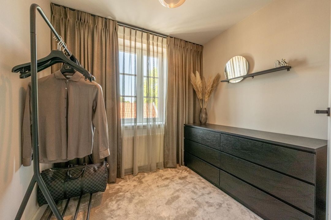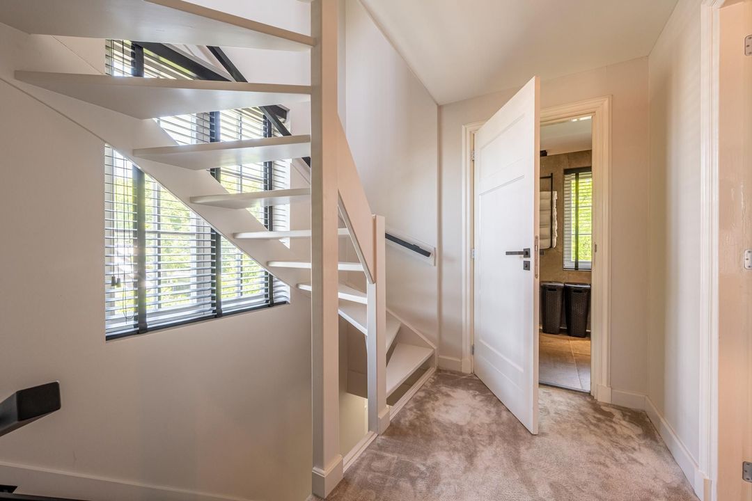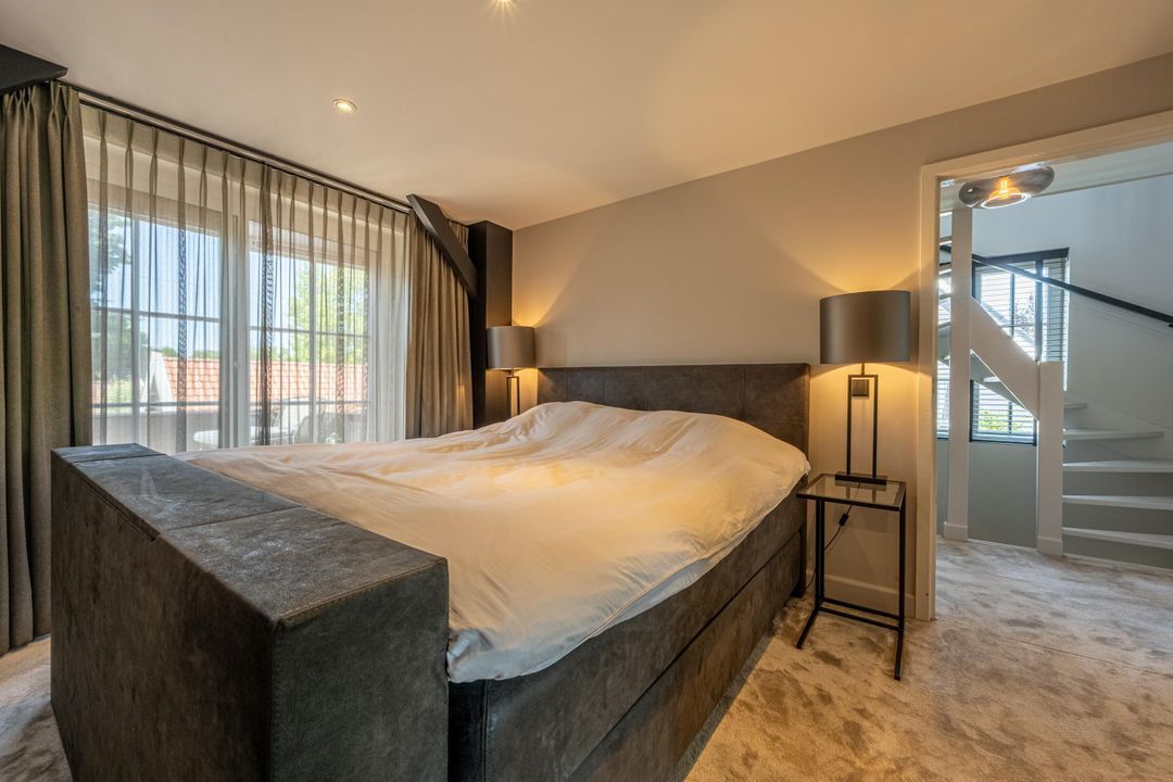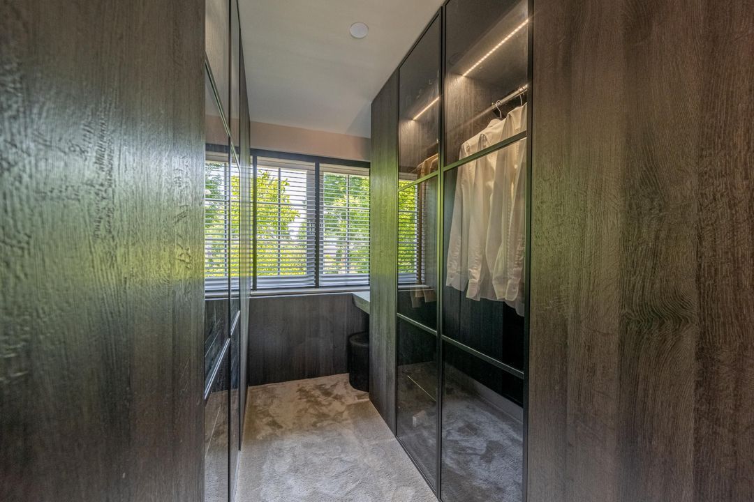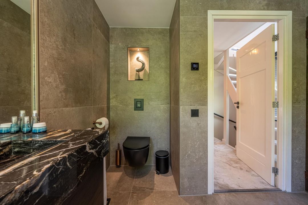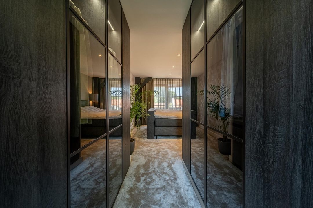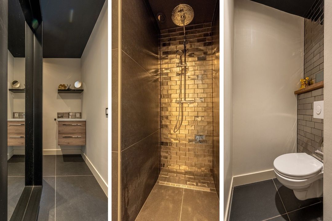 De moderne badkamer is van alle luxe voorzien: een vrijstaand ligbad, ruime inloopdouche met regendouchekop, dubbele wastafel met verwarmde en verlichte spiegel, toilet en elektrische vloerverwarming voor extra comfort.