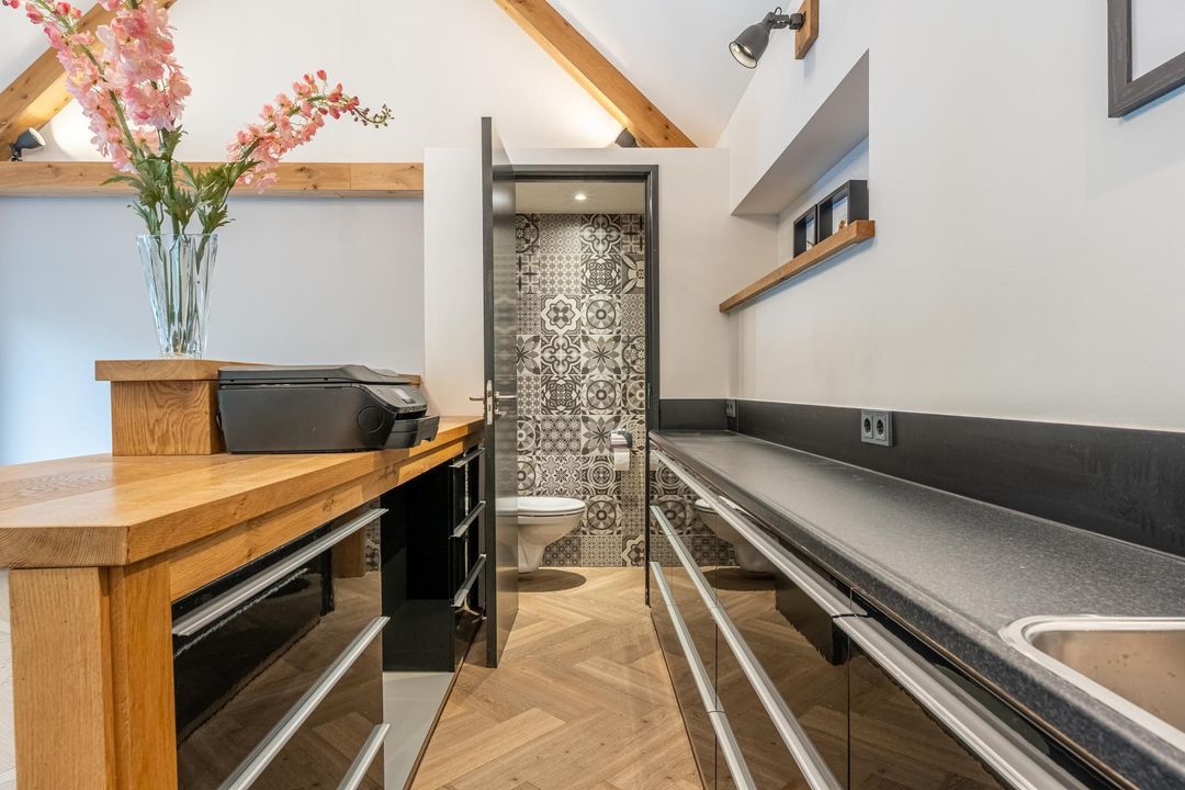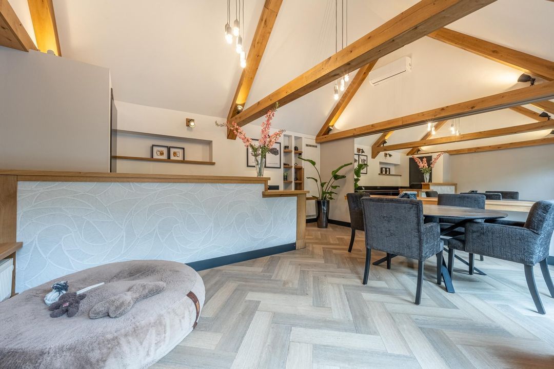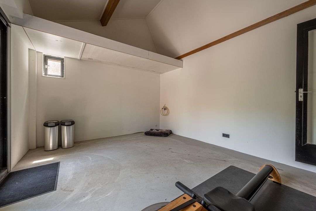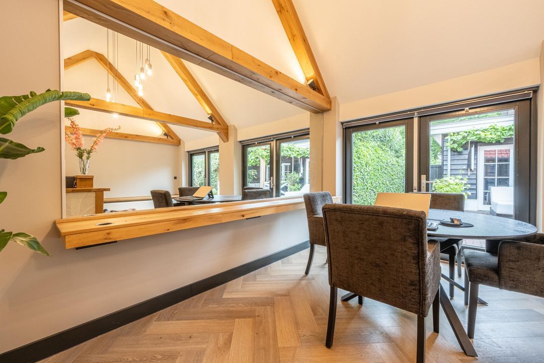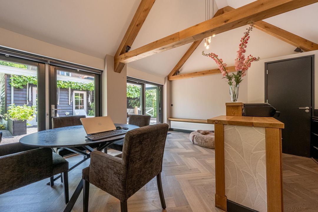 Ideaal in gebruik als salon aan huis of thuis kantoor. Deze ruimte is voorzien van elektra, water, vloerverwarming, een airco en een toilet en heeft een eigen toegang middels dubbele openslaande deuren.