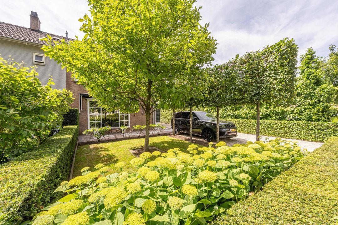 Aan de voorzijde van de woning bevindt zich een ruime, fraai aangelegde voortuin met veel groen en een eigen oprit die plaats biedt aan maar liefst vier auto’s.