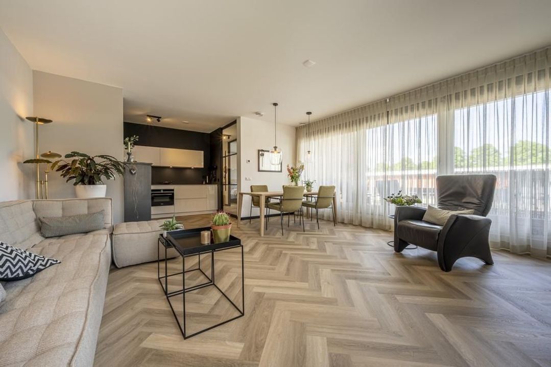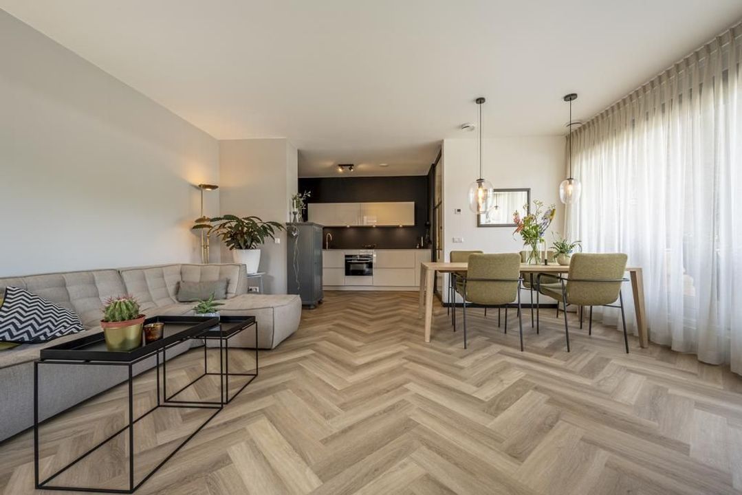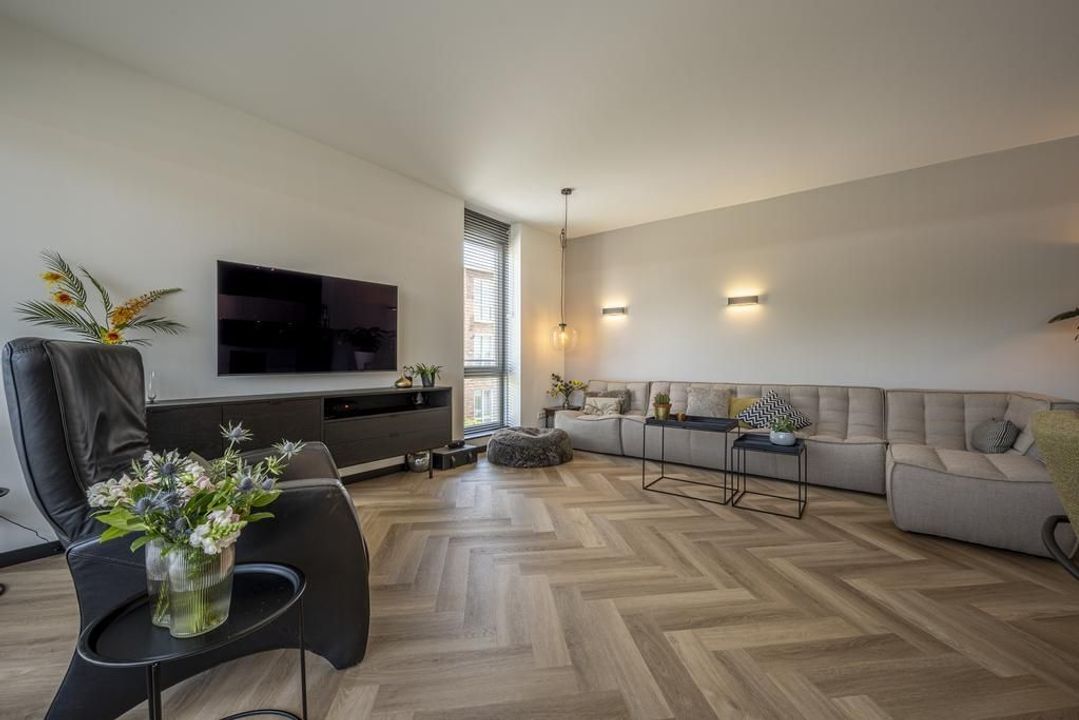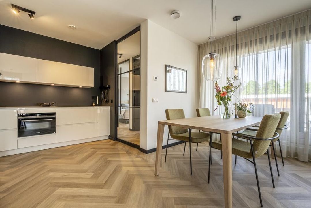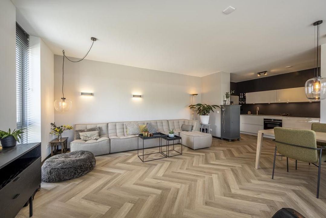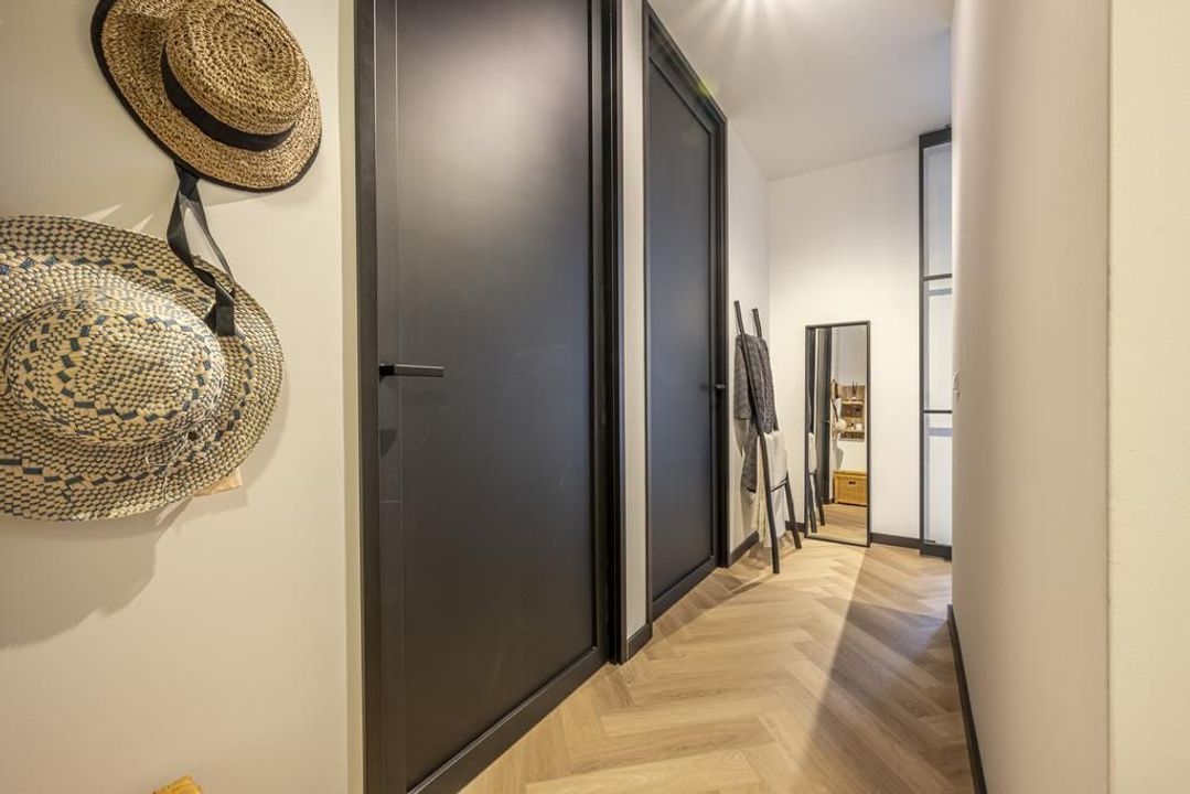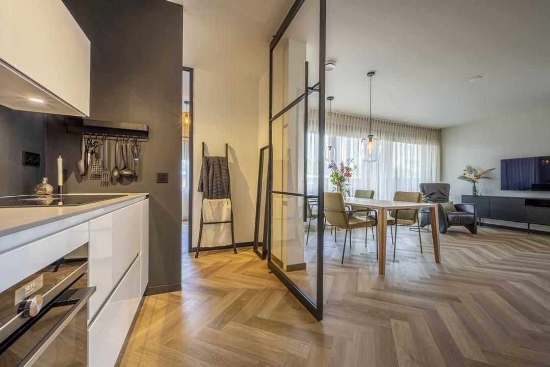 Zodra het appartement wordt binnen gegaan, zal direct de hoge afwerking en prettige woonsfeer opvallen. Hoge plafonds, modern kleur gebruik, zwarte kamerhoge stompe deuren met magneetsloten en verborgen scharnieren, PVC-vloer en taatsdeur zijn enkele eyecatchers van dit tot in de puntjes verzorgde appartement.