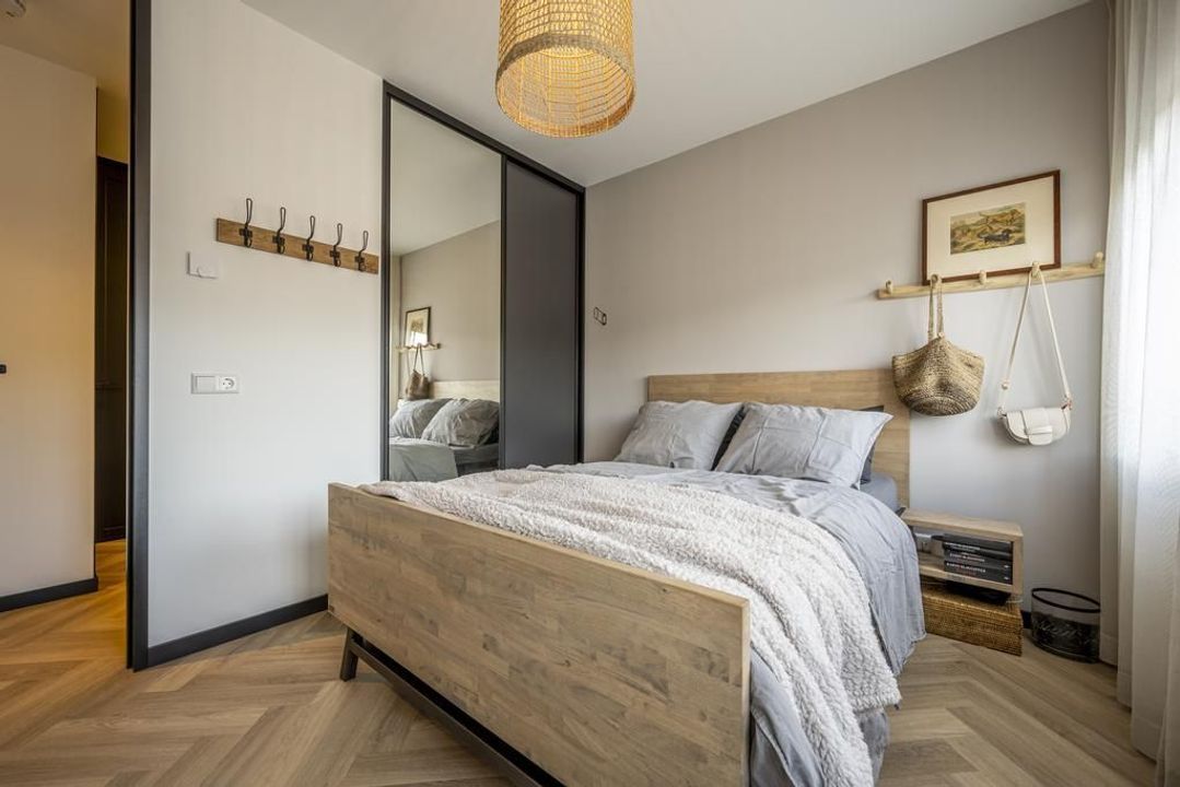 Het appartement is voorzien van 2 slaapkamers van 10m2 en 6m2. De grootste kamer heeft een ingebouwde kledingkast voorzien van zowel hang- als leggedeelte.