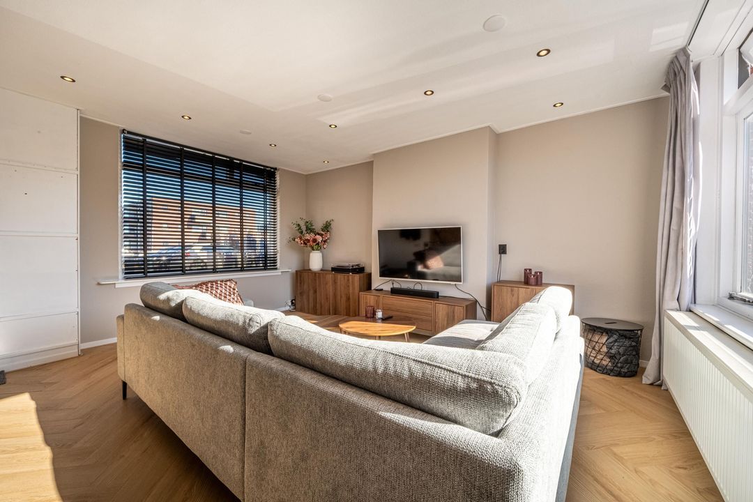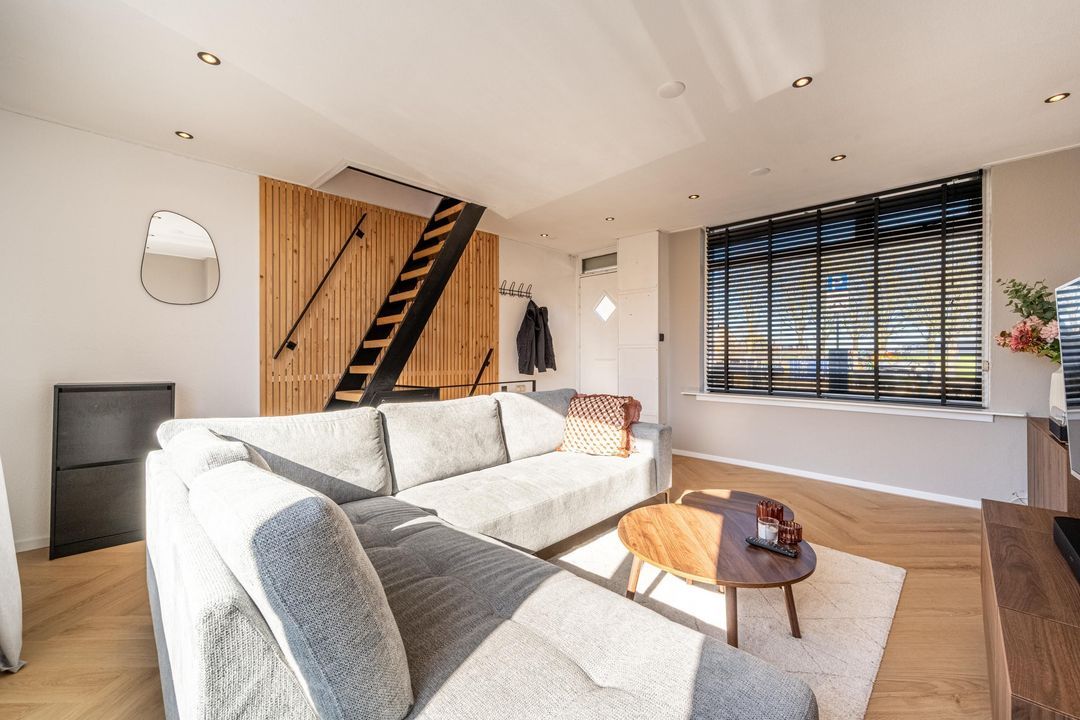 Via de entree op straatniveau stap je direct de sfeervolle woonkamer binnen. De ruimte is afgewerkt met een mooie laminaatvloer en ingebouwde spots, wat zorgt voor een moderne en verzorgde uitstraling. Dankzij de grote raampartijen valt er volop natuurlijk daglicht naar binnen. In 2024 is de woning bovendien voorzien van HR++ beglazing, wat bijdraagt aan extra wooncomfort.