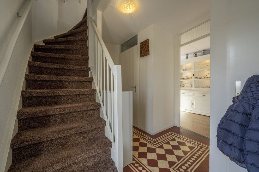 Via de overloop is toegang naar de vaste kast met planken, 3 slaapkamers, badkamer en trapopgang naar de tweede verdieping.