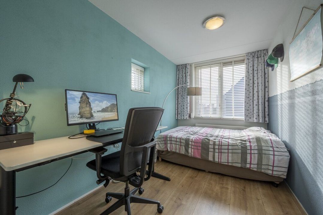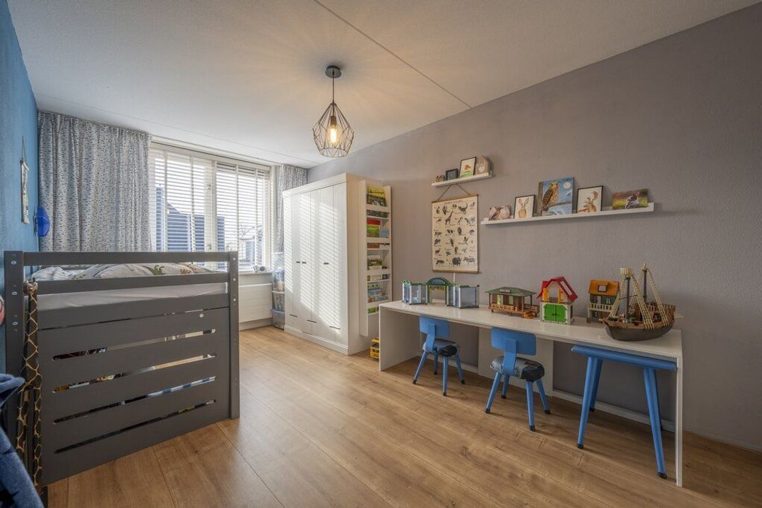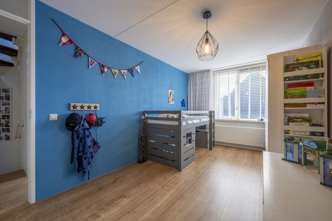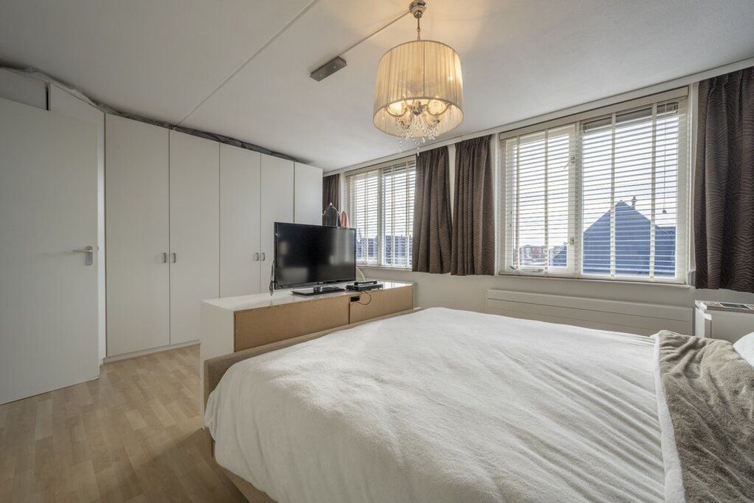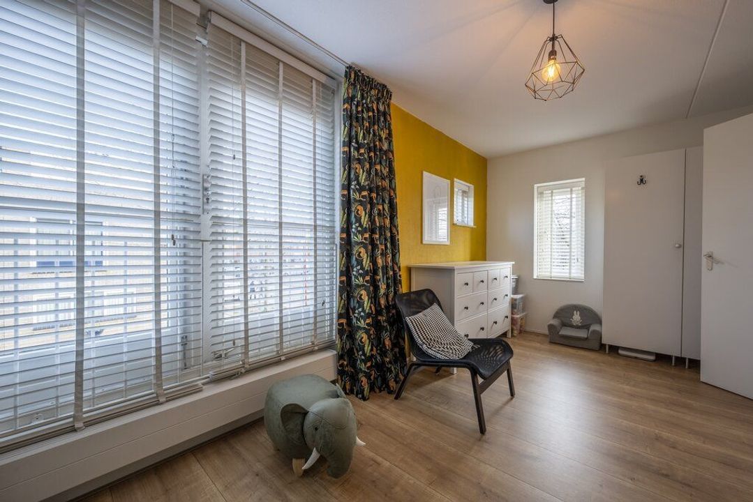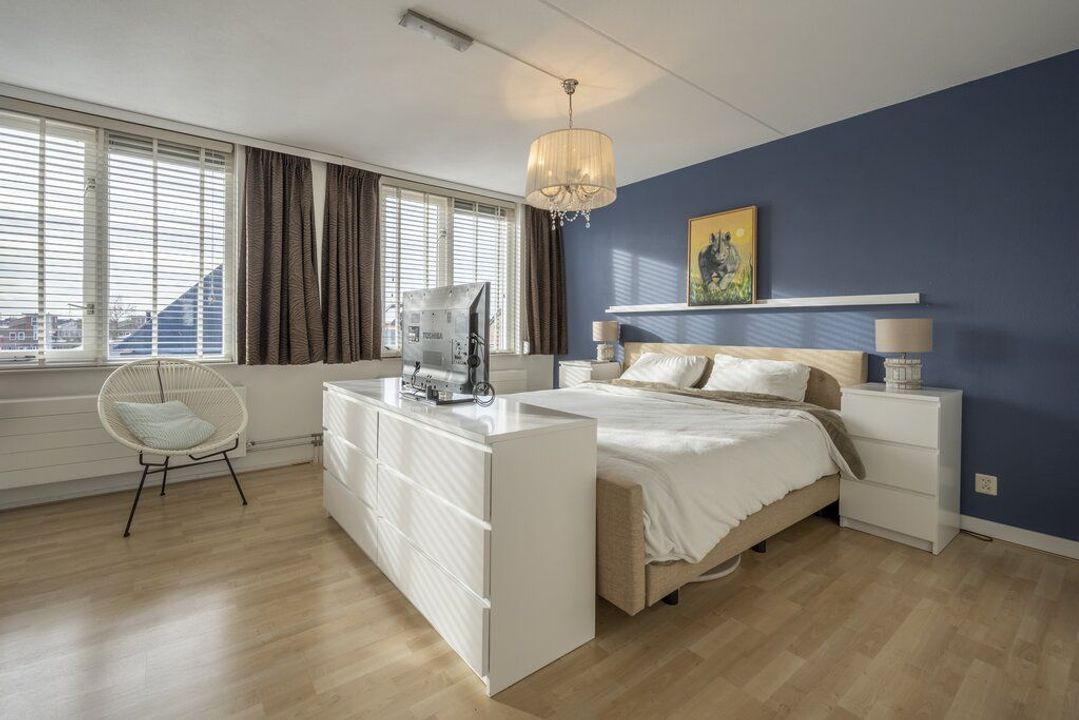 De masterbedroom bevindt zich ook op deze verdieping en is over de gehele breedte van de woning aan de achterzijde. Er zijn handmatige rolluiken en een nette laminaatvloer.