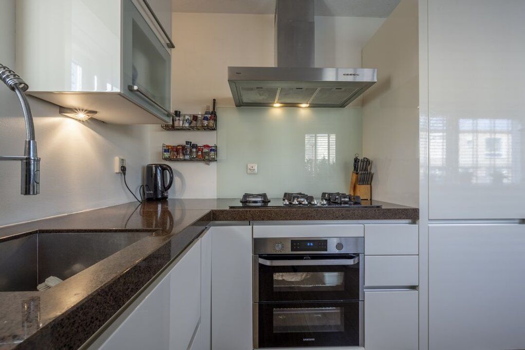 De keuken is ingericht met een 5-pits gaskookplaat met afzuigkap en wokbrander, koelkast , grote oven met 2 separaat bedienbare compartimenten en een vaatwasser. Afgelopen jaren zijn de vaatwasser, koelkast en oven vernieuwd (2017-2020). De keuken is afgewerkt met hoogglans crème kleurige keukenkasten gecombineerd met een composiet werkblad.
