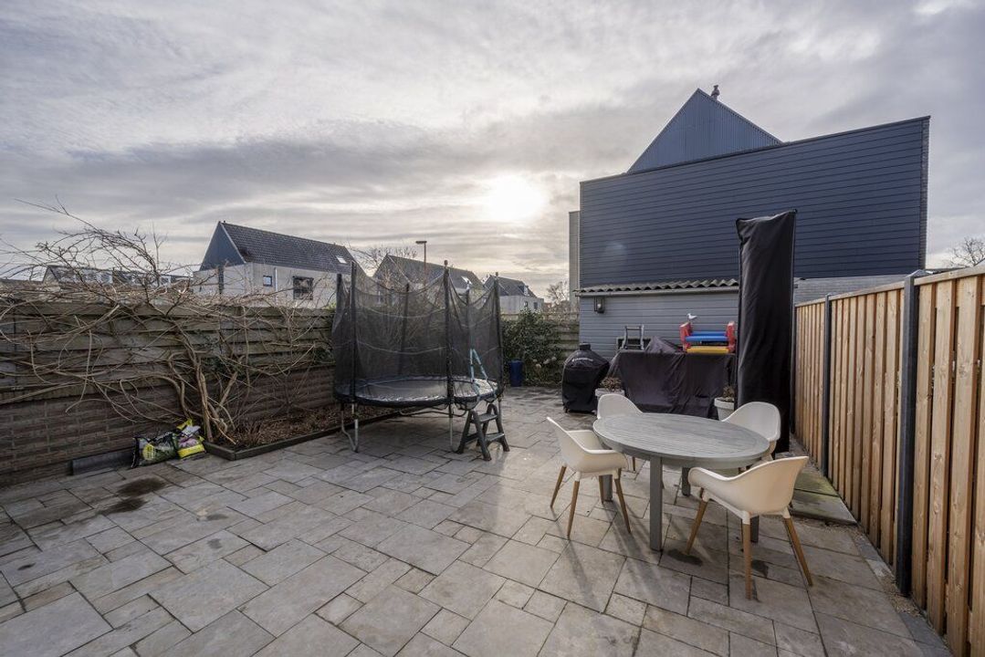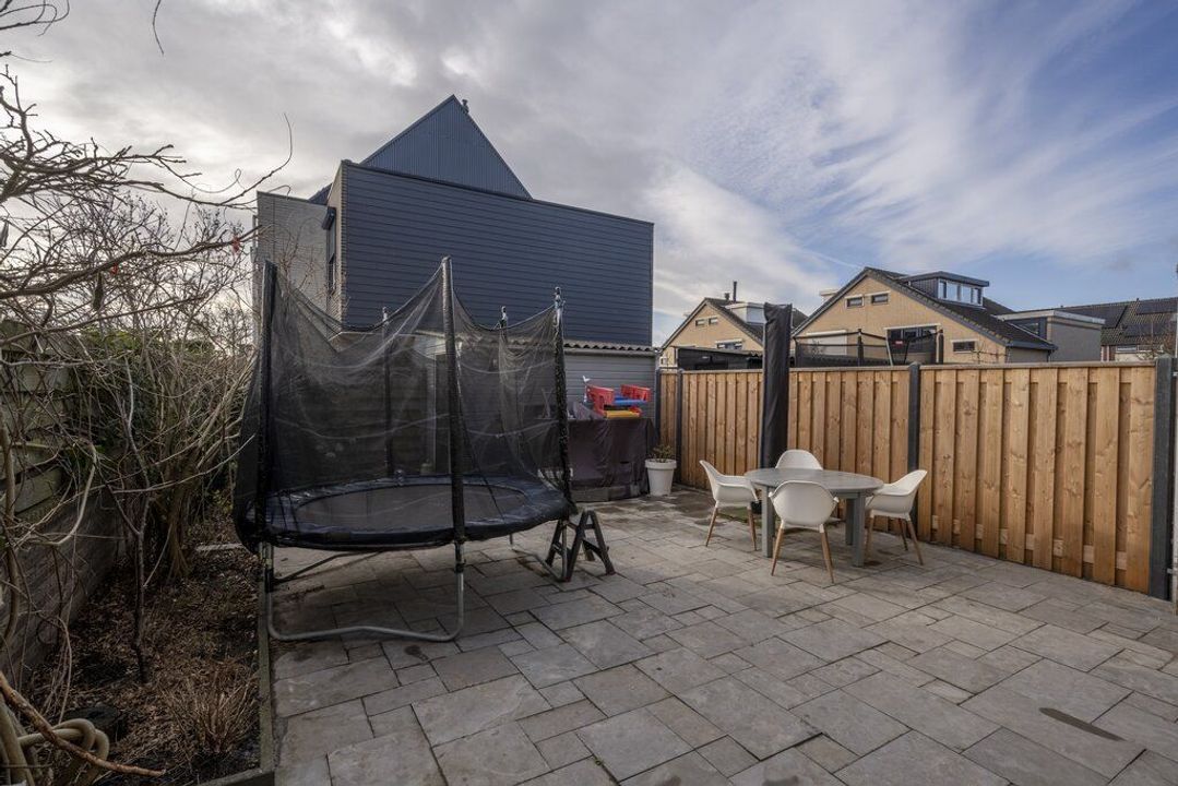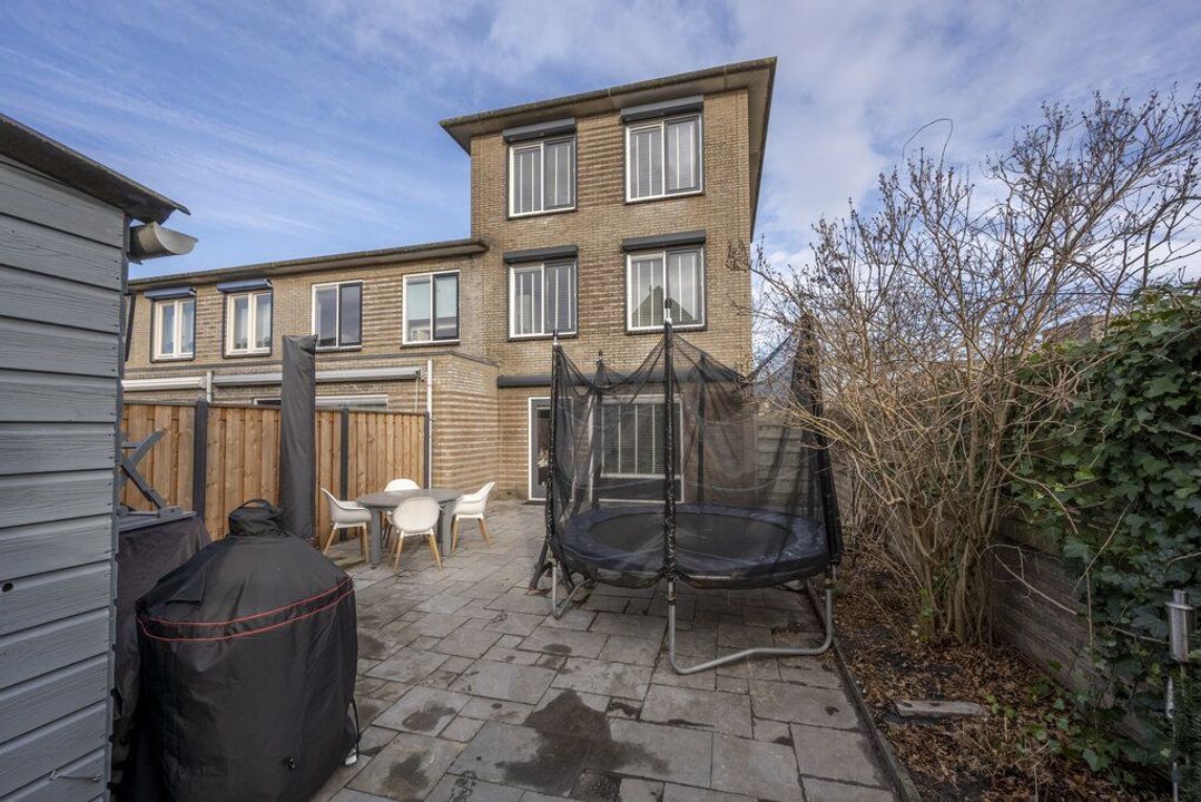 De achtertuin heeft een zonnige ligging op het zuiden. Er is een elektrisch zonnescherm van 6 meter breed en 3,5 meter diep, heerlijk tijdens een warme en zonnige zomerdag. Verder is de tuin afgewerkt met tegels, volwassen beplanting en een nieuwe schutting geplaatst in 2020. De houten berging is voorzien van elektra en een goede plek voor fietsen en tuinspullen.