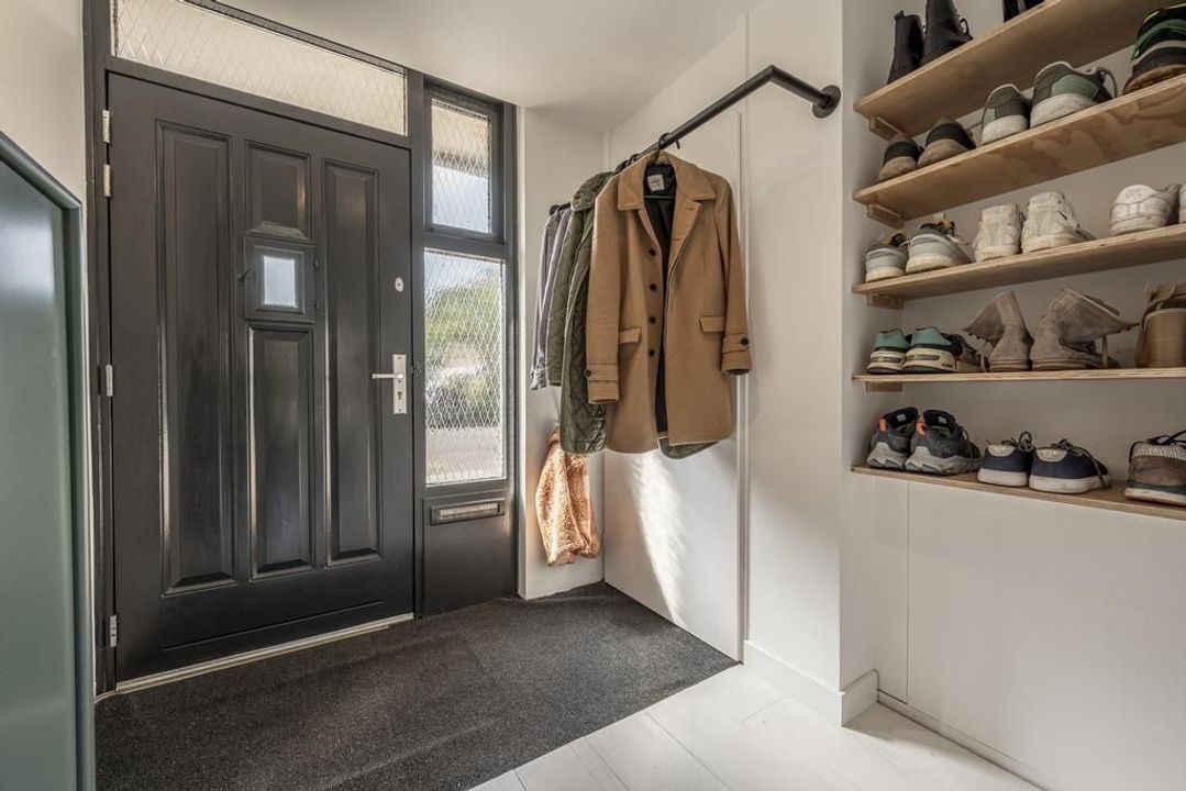 Bij binnenkomst in de woning betreed je de entree, met toegang tot de meterkast, een kapstok, een eigentijdse toiletruimte met fonteintje en de woonkamer.