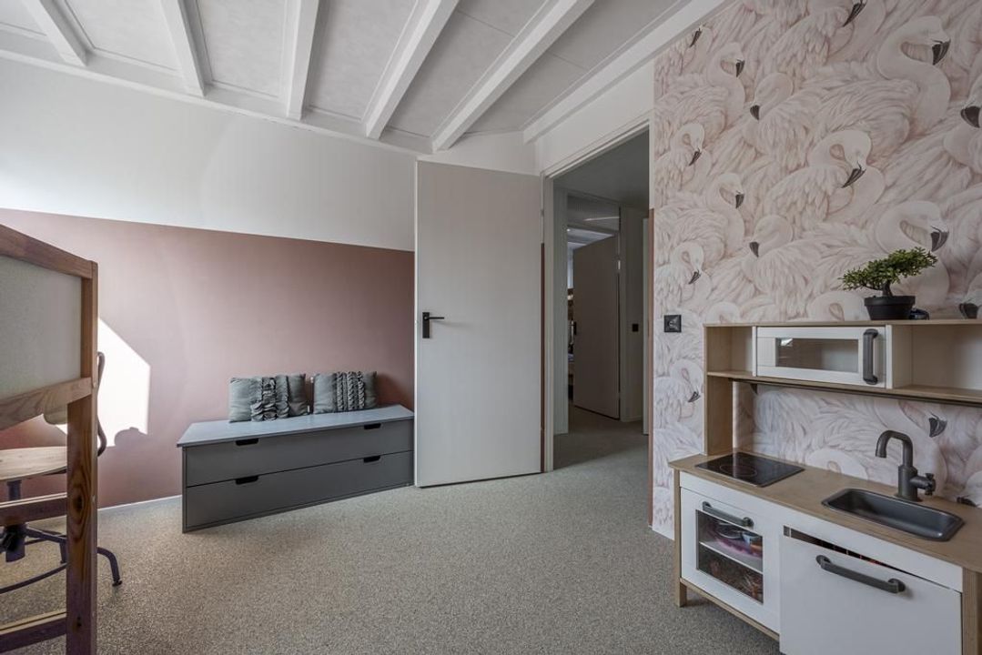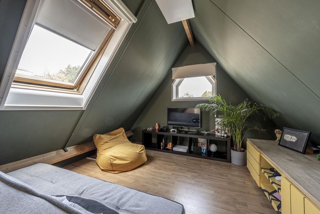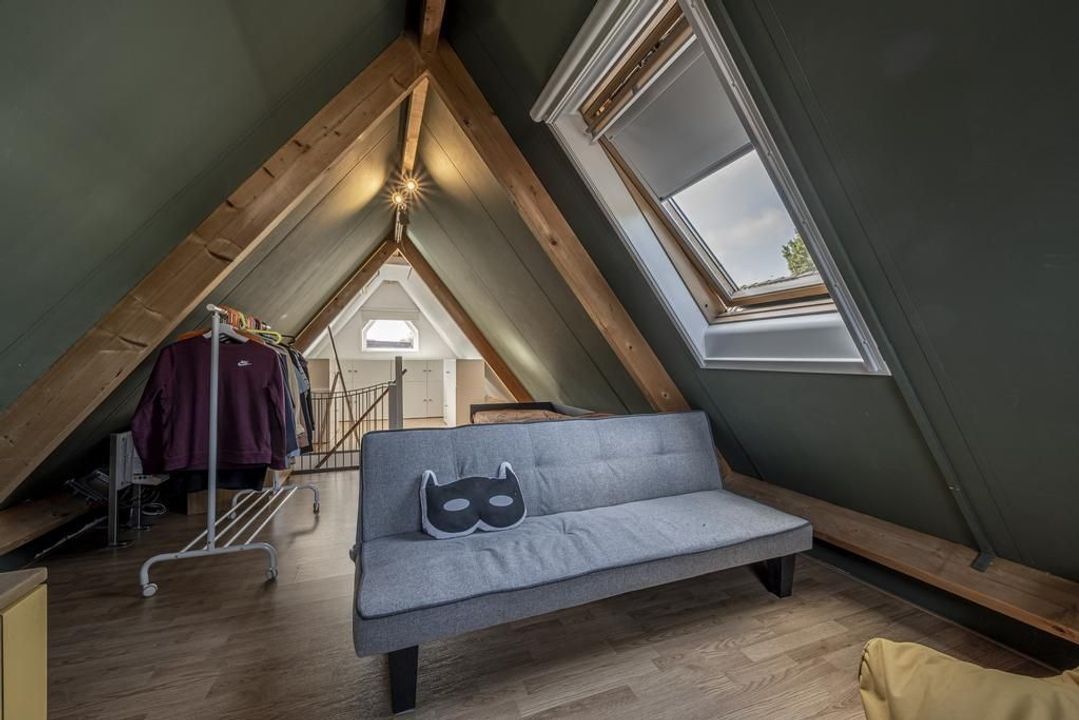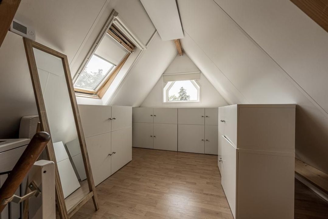 De ruime open zolderverdieping is via een vaste trap te bereiken. Een ideale ruimte voor een mooie tiener- en/of werkkamer. Er zijn 2 dakramen en 2 zijramen voor voldoende lichtinval en hier is ook de omvormer van de zonnepanelen geplaatst.