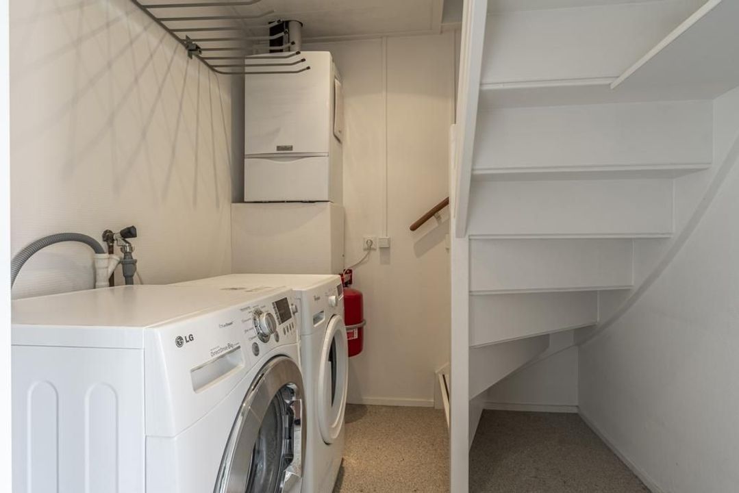 Op de eerste verdieping vind je een overloop die leidt naar de slaapkamers, evenals een aparte ruimte met de cv-ketel en de opstelling voor de wasmachine en droger. Hier bevindt zich ook de vaste trap naar de tweede verdieping.