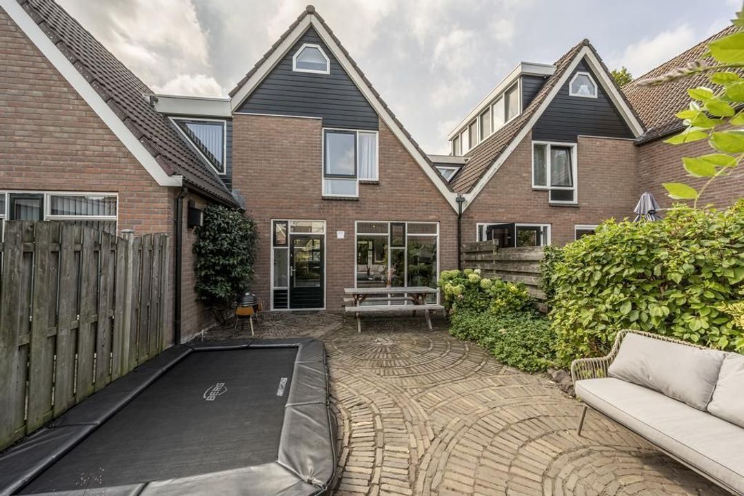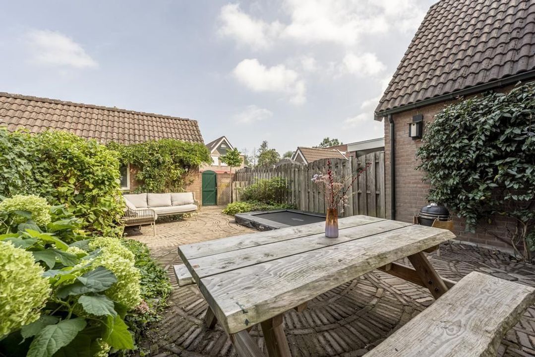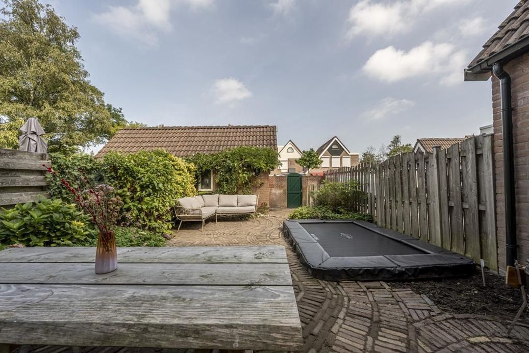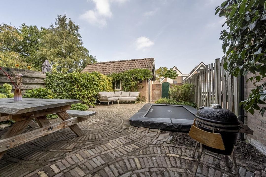 Achterin de tuin bevindt zich een stenen berging met een praktische vliering, elektrische aansluitingen en wateraansluiting. Een handige achterom biedt niet alleen toegang tot de tuin, maar stelt ook kinderen in staat om gemakkelijk naar het aangrenzende speelplaatsje te gaan.