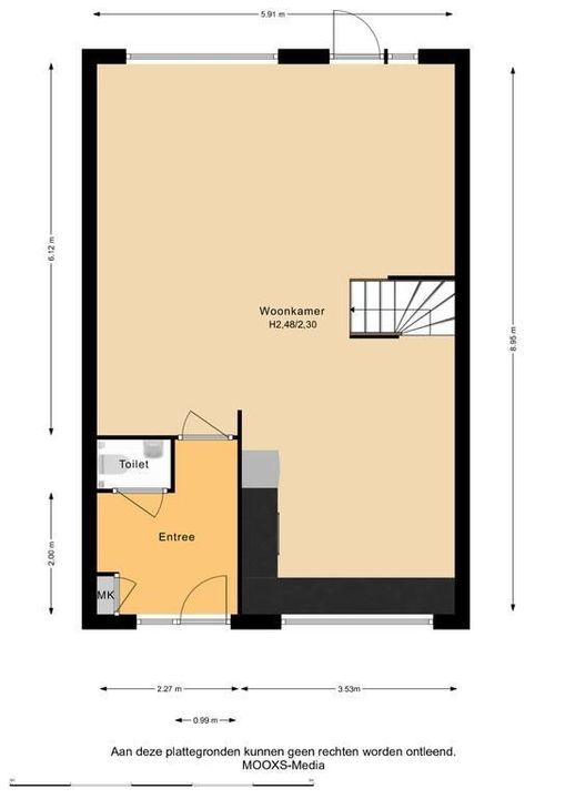 Deze presentatie is met zorg samengesteld, onder andere (maar niet uitsluitend) aan de hand van de door opdrachtgever (verkoper/verhuurder) aan makelaar verstrekte gegevens en tekeningen. Desondanks kunnen aan deze presentatie geen rechten worden ontleend en aanvaardt de makelaar of zijn opdrachtgever (verkoper/verhuurder) geen enkele aansprakelijkheid voor enige onvolledigheid, onjuistheid of anderszins -dan wel de gevolgen daarvan- van de in deze presentatie verstrekte informatie of elke andere aan de (kandidaat) koper of huurder (of andere belanghebbende) verstrekte informatie m.b.t. het te koop (of te huur) aangeboden object. Alle opgegeven maten en oppervlakten zijn daarnaast slechts indicatief. Mocht deze presentatie of andere verstrekte informatie m.b.t. het te koop (of te huur) aangeboden object vragen oproepen, dan nodigen wij je van harte uit deze onder onze (makelaar) aandacht te brengen.