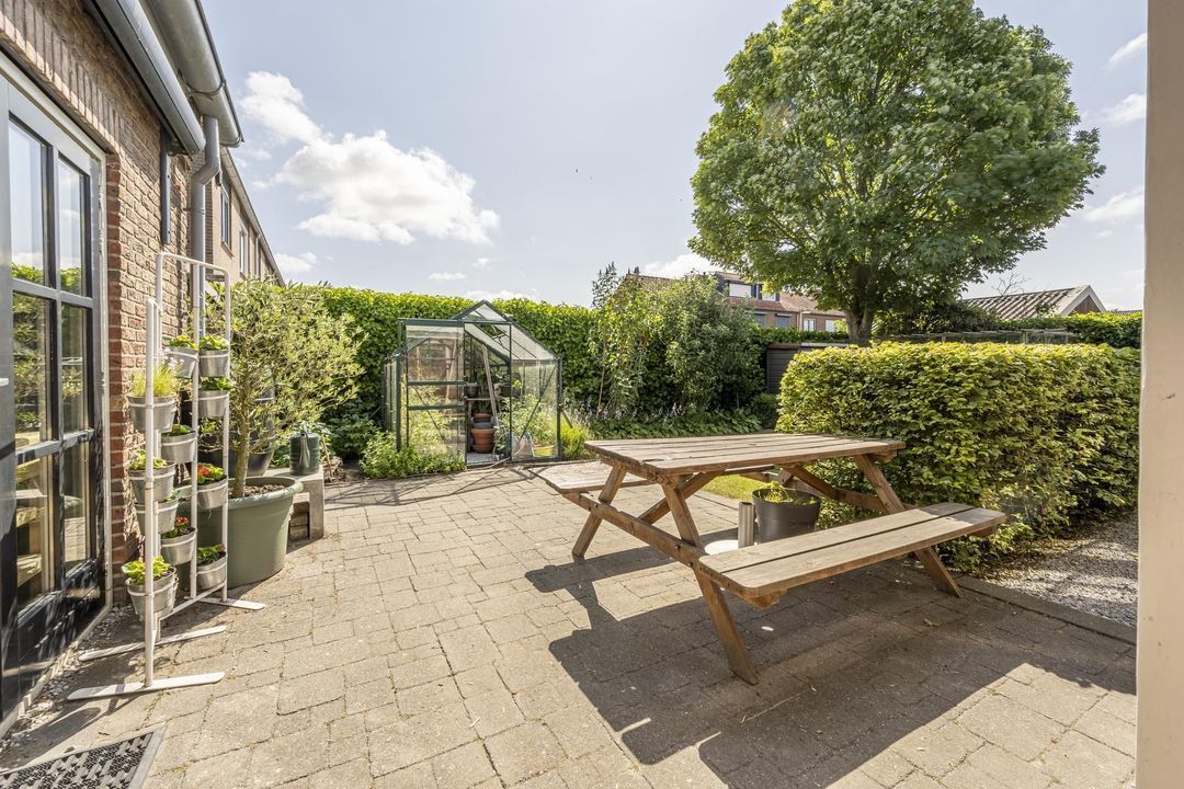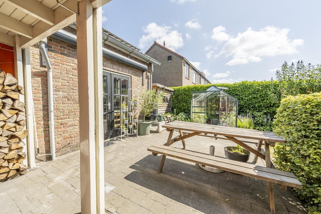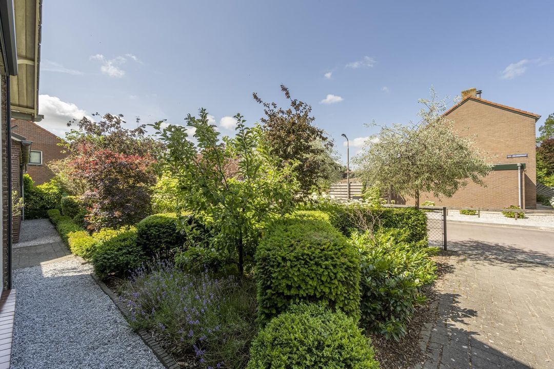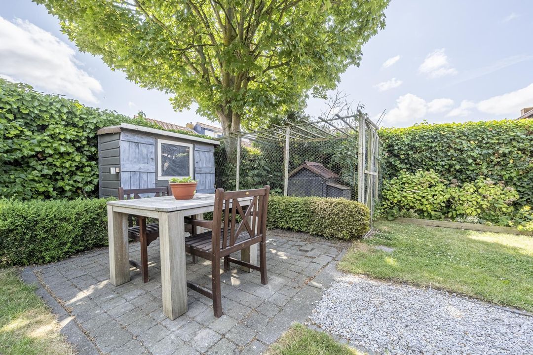 Buiten vind je een groene tuin rondom de woning, waar privacy gegarandeerd is aan de achterzijde. Daarnaast zijn er drie houten bijgebouwen en een kippenhok aanwezig. Hierdoor is er genoeg extra opslagruimte en eventueel verse eieren. Bovendien zijn er drie zonneschermen en een screen voor het grote raam van de woonkamer aanwezig, waardoor je op zonnige dagen kunt genieten van schaduw en de warmte kunt buitenhouden.