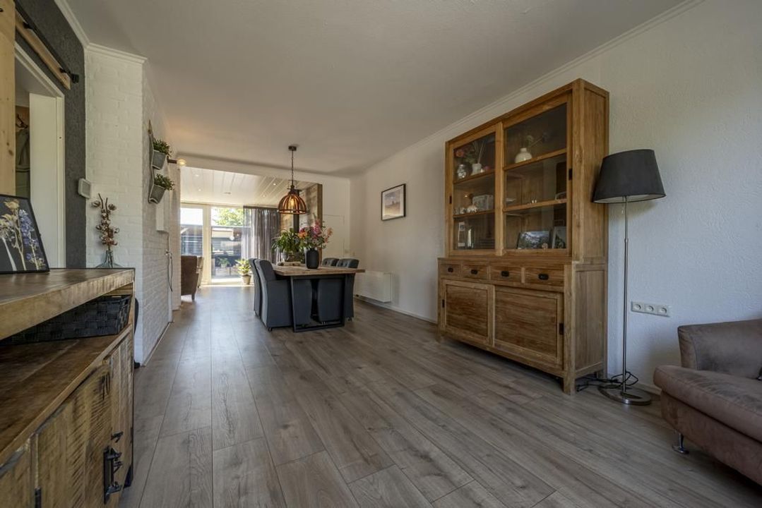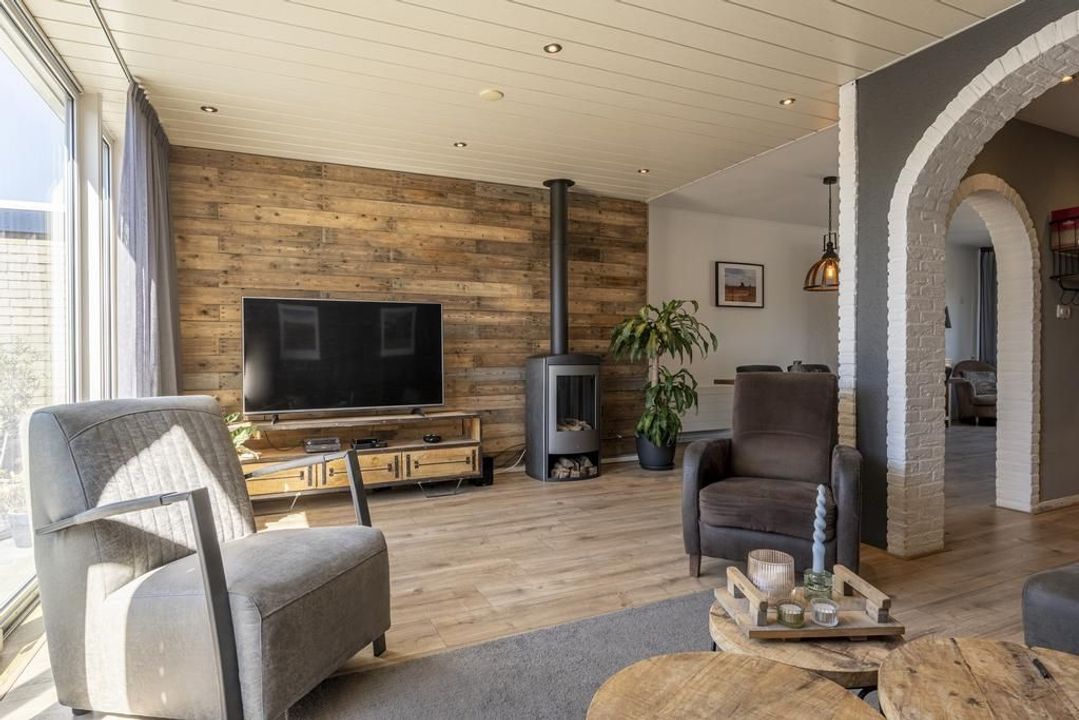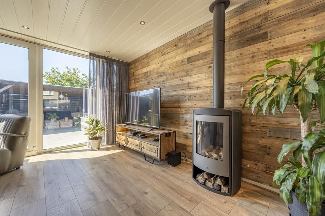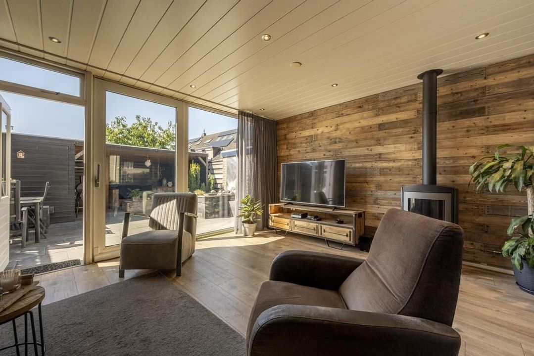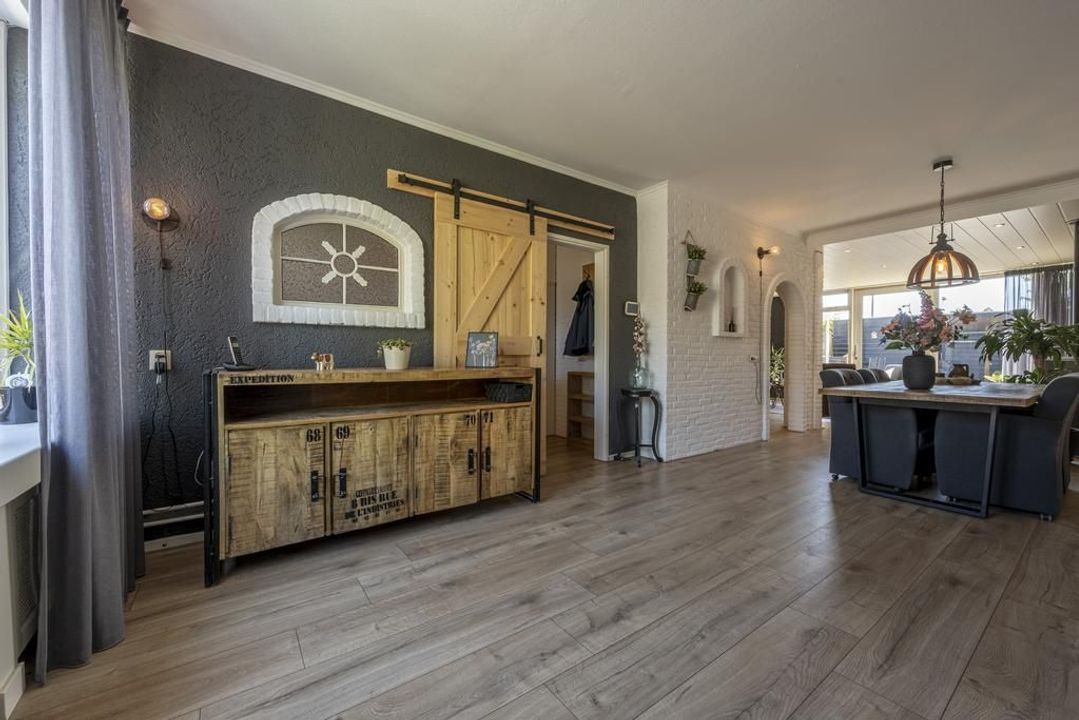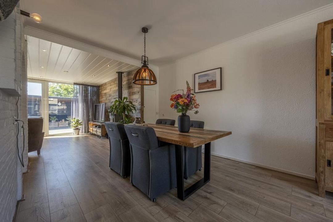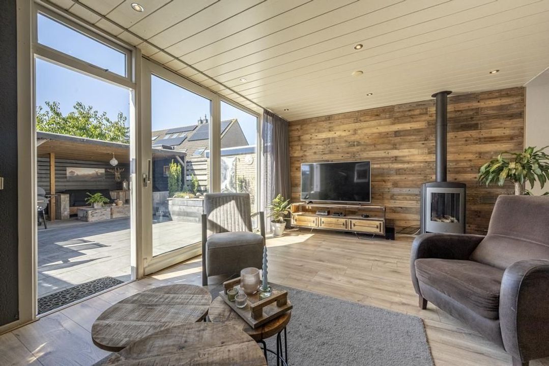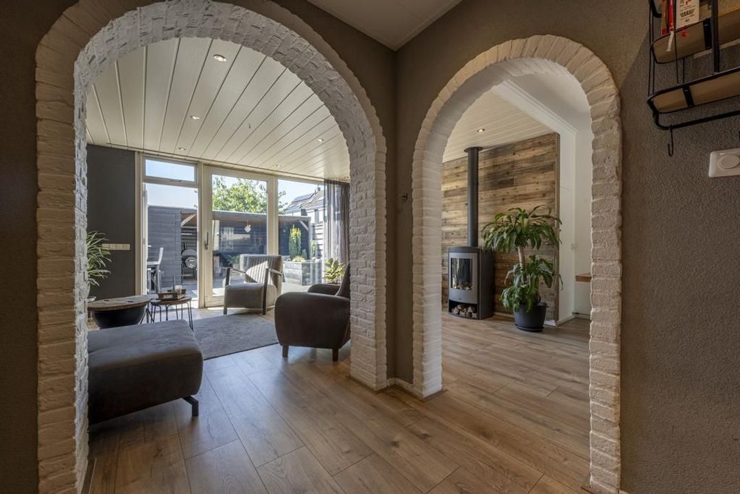 De uitgebouwde L-vormige woonkamer is royaal genoeg voor een grote eettafel en een comfortabele zithoek. Daarbij is er een gezellige gaskachel aanwezig. Aan de voorzijde van de woonkamer bestaat de mogelijkheid om een speelruimte of een praktische werkplek te creëren. Hier is voldoende ruimte voor het hele gezin! Zet op een mooie dag de schuifpui open en de tuin wordt een verlengstuk van de leefruimte.