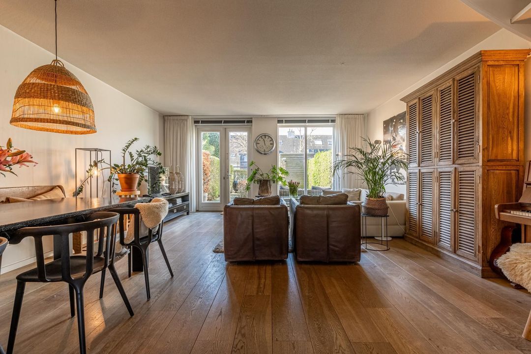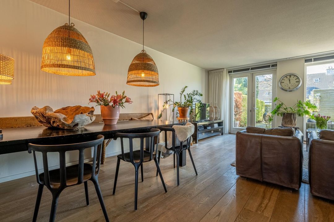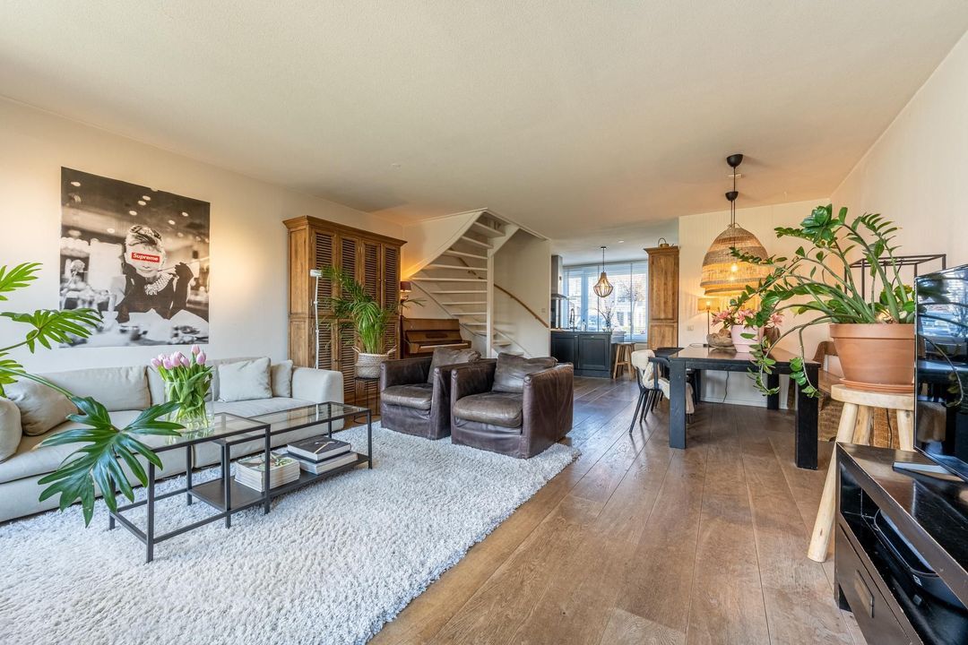 De lichte woonkamer heeft voldoende ruimte voor een gezellige zithoek en staat in open verbinding met de keuken en eettafel. De achterpui is nagenoeg geheel voorzien van ramen en dat geeft een prettige lichtinval. Zet op een mooie dag de openslaande deuren op en de tuin wordt een verlengstuk van de living.