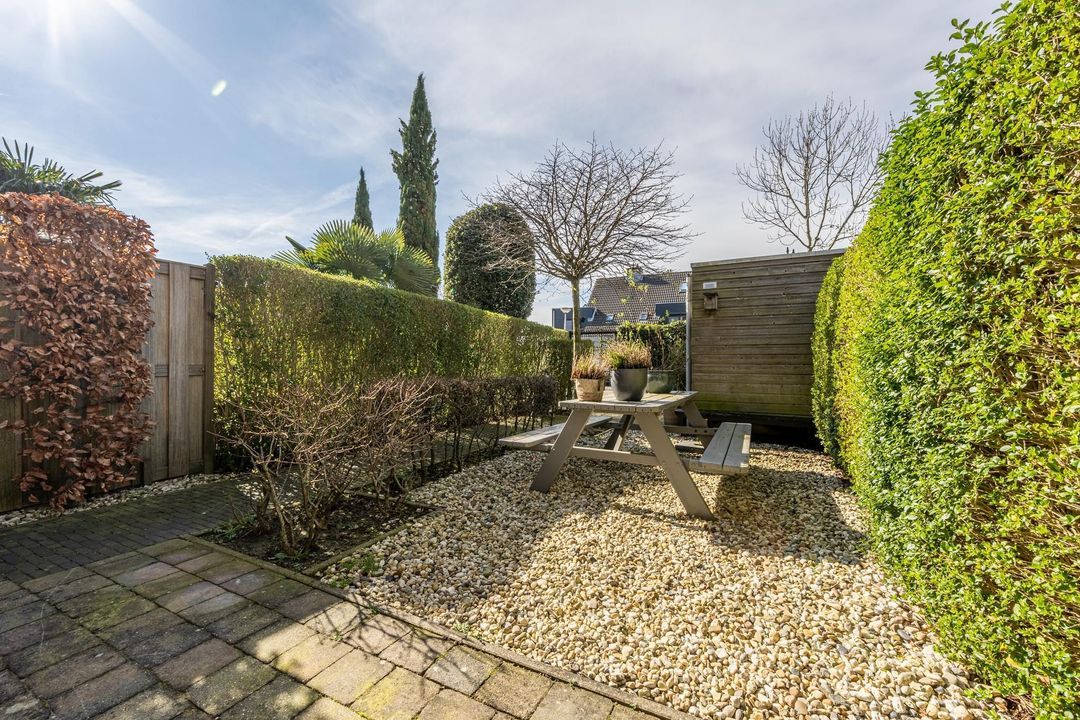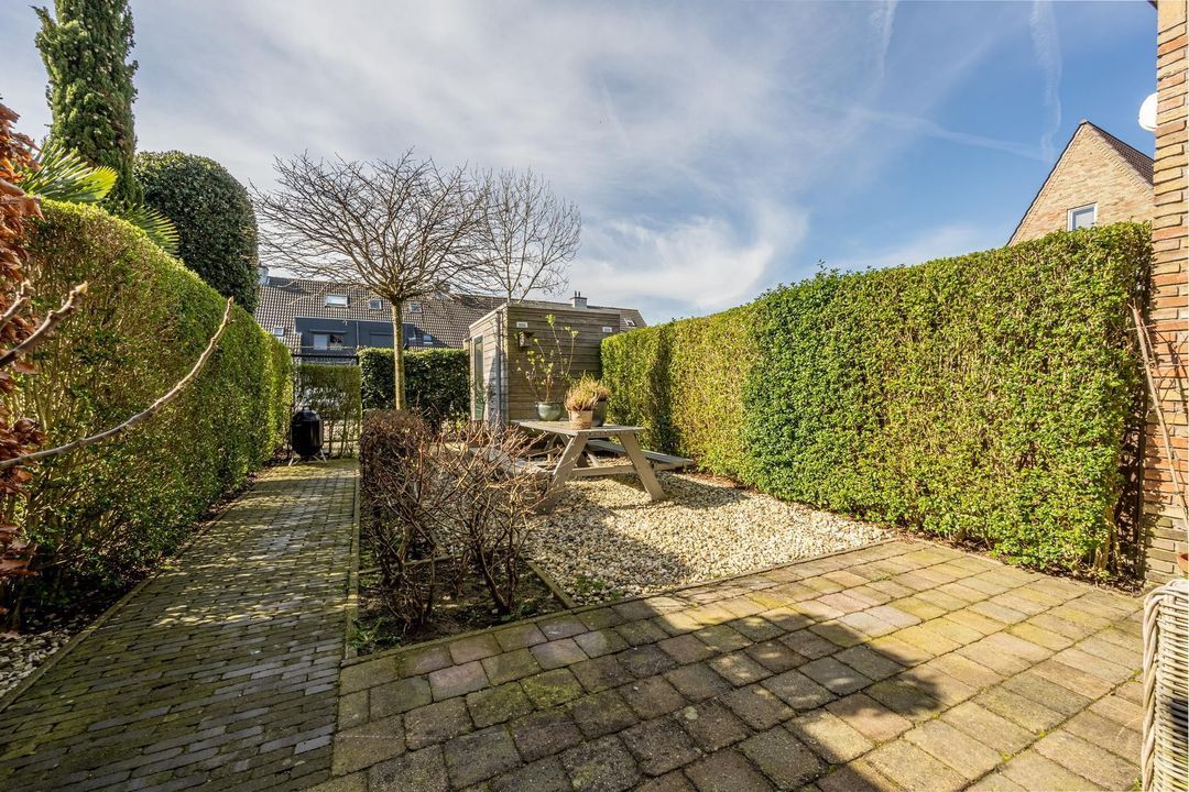 De tuin is gunstig gelegen op het zonnige zuiden, waardoor er op elk moment van de dag zowel zonnige als schaduwrijke plekjes te vinden zijn. Deze prachtig aangelegde tuin is voorzien van siertegels, volwassen beplanting en een handig waterpunt. Voor het opbergen van fietsen en tuinbenodigdheden is er een houten berging met elektriciteit aanwezig, en dankzij de achterom is de tuin gemakkelijk toegankelijk.