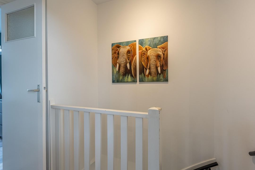 De overloop, voorzien van een laminaatvloer, biedt toegang tot drie slaapkamers, een inpandige berging en de badkamer.