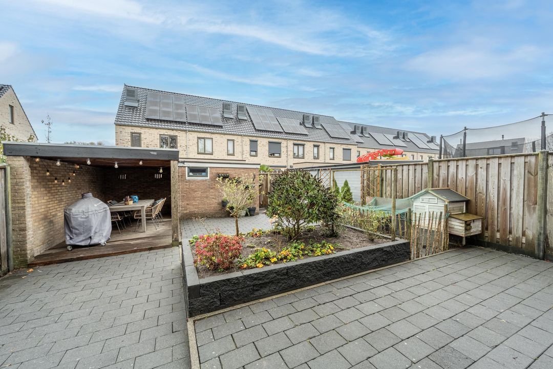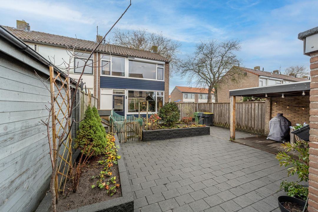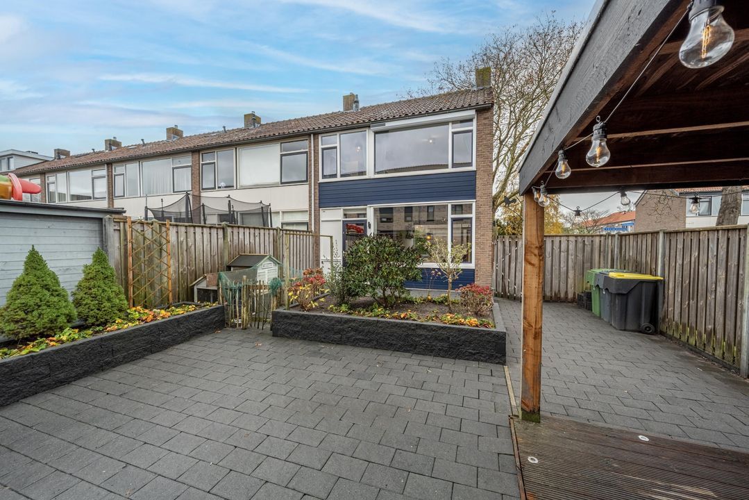 De woning beschikt, passend bij de hoekligging, over een voor-, zij- en achtertuin. Aan de voorzijde is voldoende ruimte om twee auto’s op eigen terrein te parkeren. De achtertuin is verzorgd aangelegd met bestrating, vaste plantenbakken en een stenen schuur voorzien van elektra. Daarnaast is er een sfeervolle houten overkapping, een heerlijke plek om in alle seizoenen van het buitenleven te genieten.