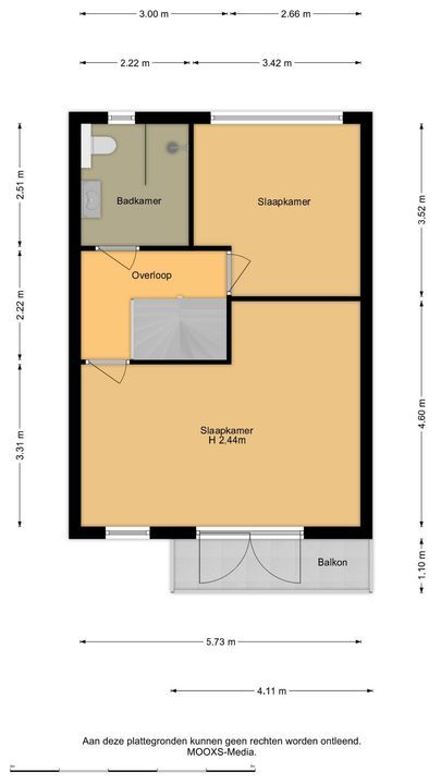 De overloop biedt toegang tot twee slaapkamers en de badkamer.
