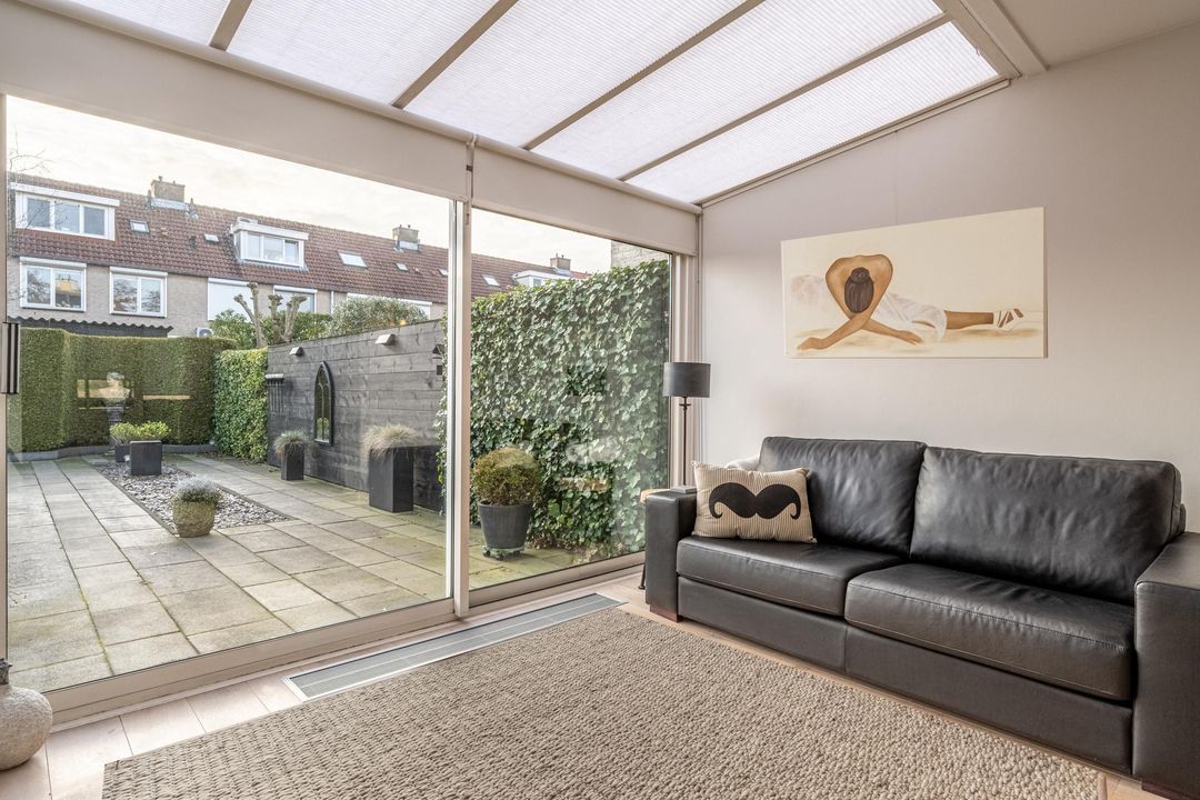 Aansluitend aan de keuken bevindt zich de serre, een lichte en aangename ruimte. De serre is uitgevoerd met aluminium kozijnen en dubbel glas en beschikt over een schuifpui, waardoor er een prettige verbinding ontstaat tussen het woongedeelte en de tuin. Het serredak is voorzien van plissé gordijnen, wat bijdraagt aan de aangename lichtinval.
