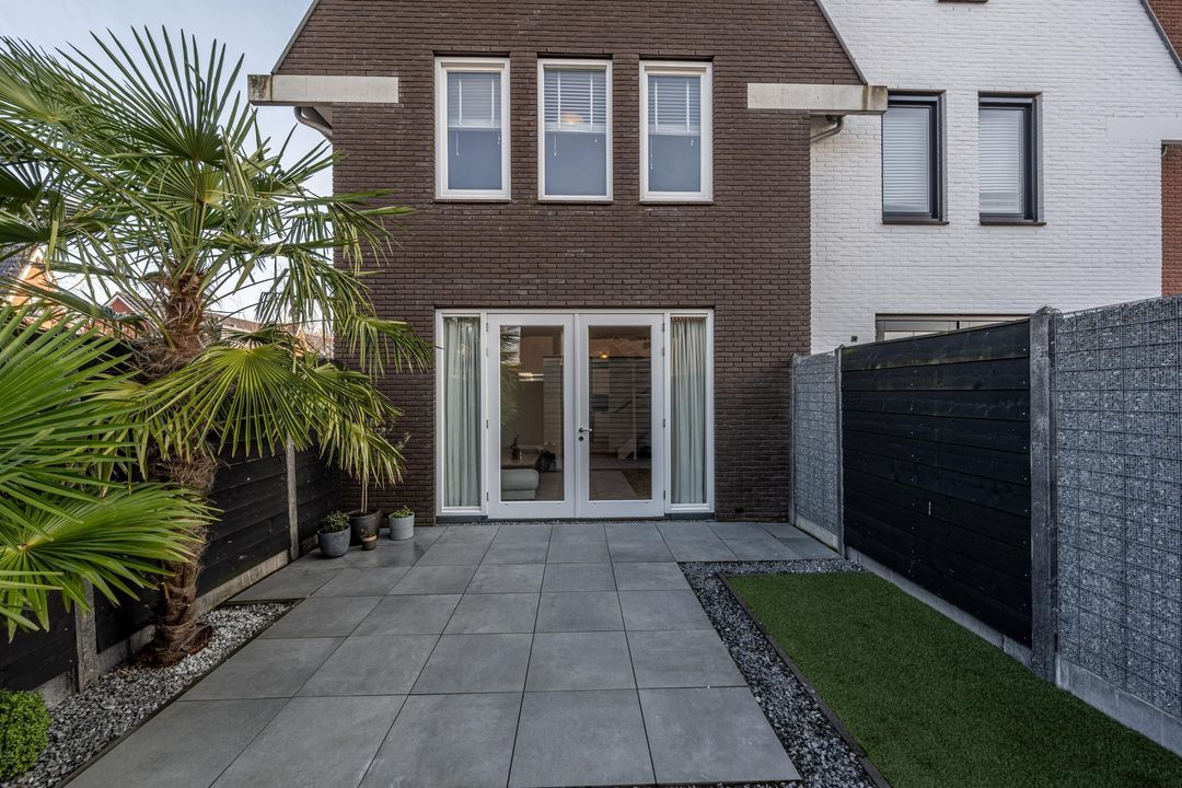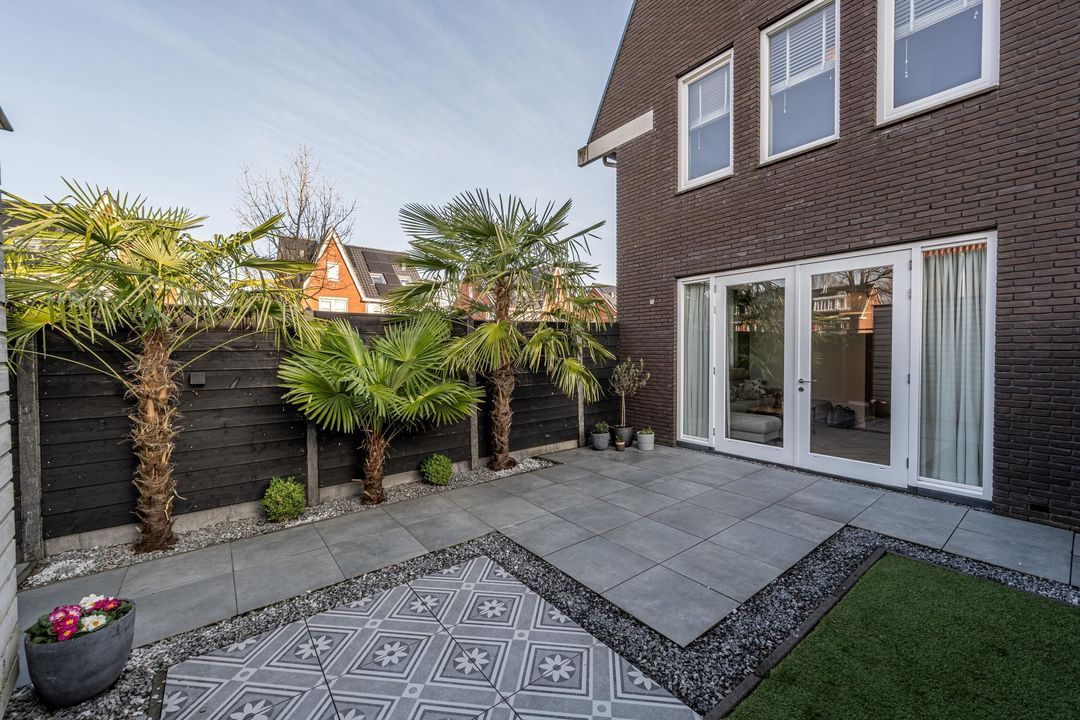 De achtertuin is in 2020 vernieuwd en fraai aangelegd met strak tegelwerk en borders met palmbomen, wat zorgt voor een verzorgde en moderne uitstraling. Dankzij de indeling is er voldoende ruimte voor meerdere zitplekken. Achterin de tuin staat een vrijstaande schuur die is voorzien van elektra, ideaal voor fietsen, opslag of hobbygebruik. Het schilderwerk aan de buitenkant van de woning is in 2022 uitgevoerd.