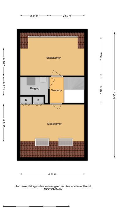 De tweede slaapkamer beschikt over een grote dakkapel met rolluiken en horren, wat zorgt voor een zee aan ruimte en natuurlijk licht. Ook hier is een airco aanwezig (warm/koud), en door de knieschotten is er volop opbergruimte beschikbaar voor bijvoorbeeld koffers, dozen of speelgoed.
