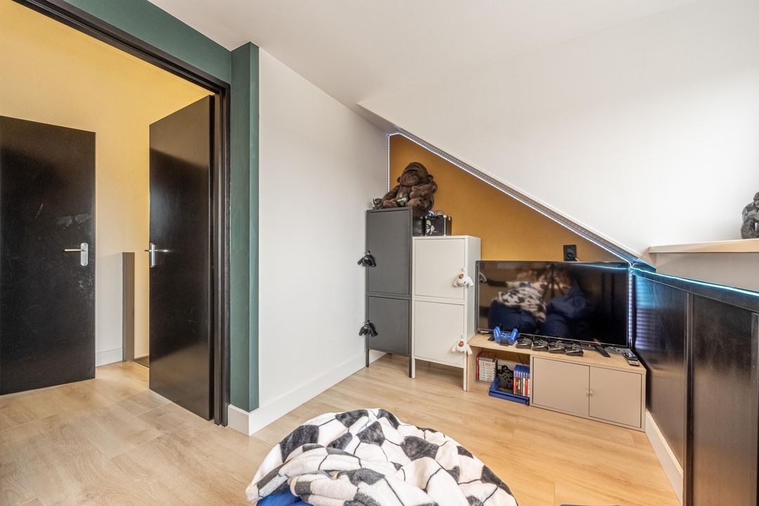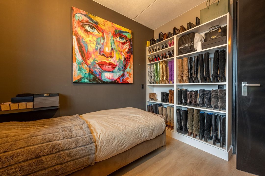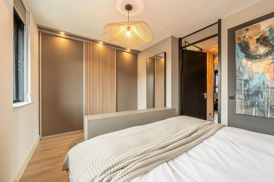 De derde slaapkamer ligt aan de voorzijde en is ruim van formaat. De drie ramen zorgen voor een speelse lichtinval en geven de kamer een prettig karakter. Daarnaast beschikt deze slaapkamer over een ingebouwde linnenkast met spotverlichting en een praktische hang- en legindeling.
