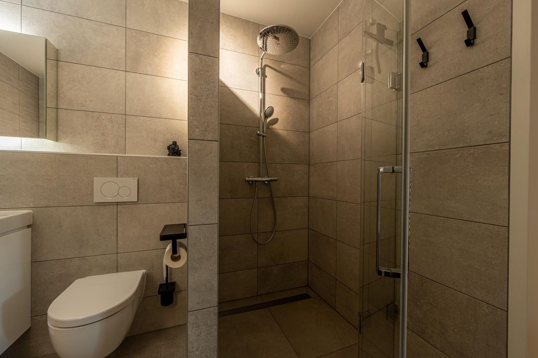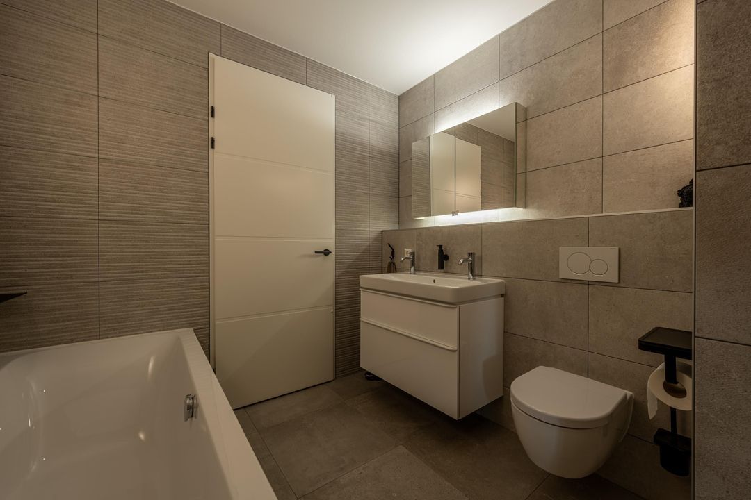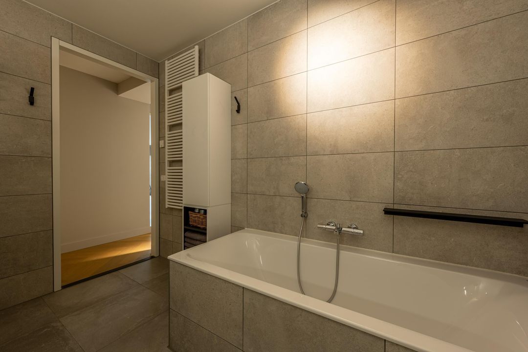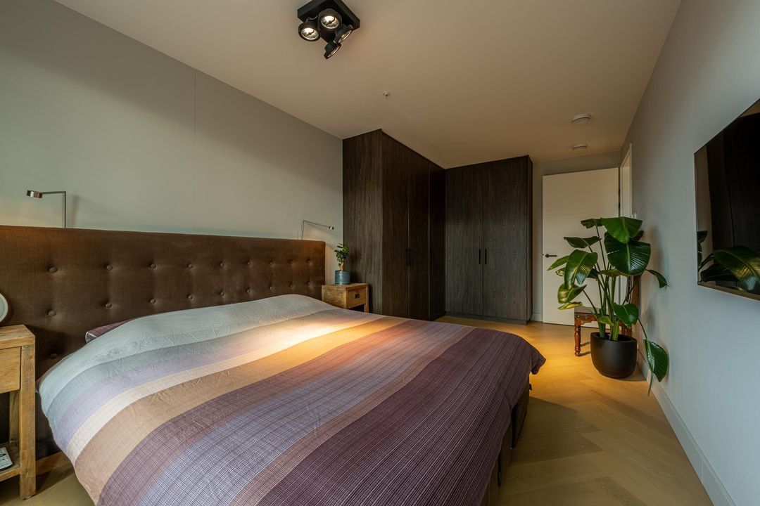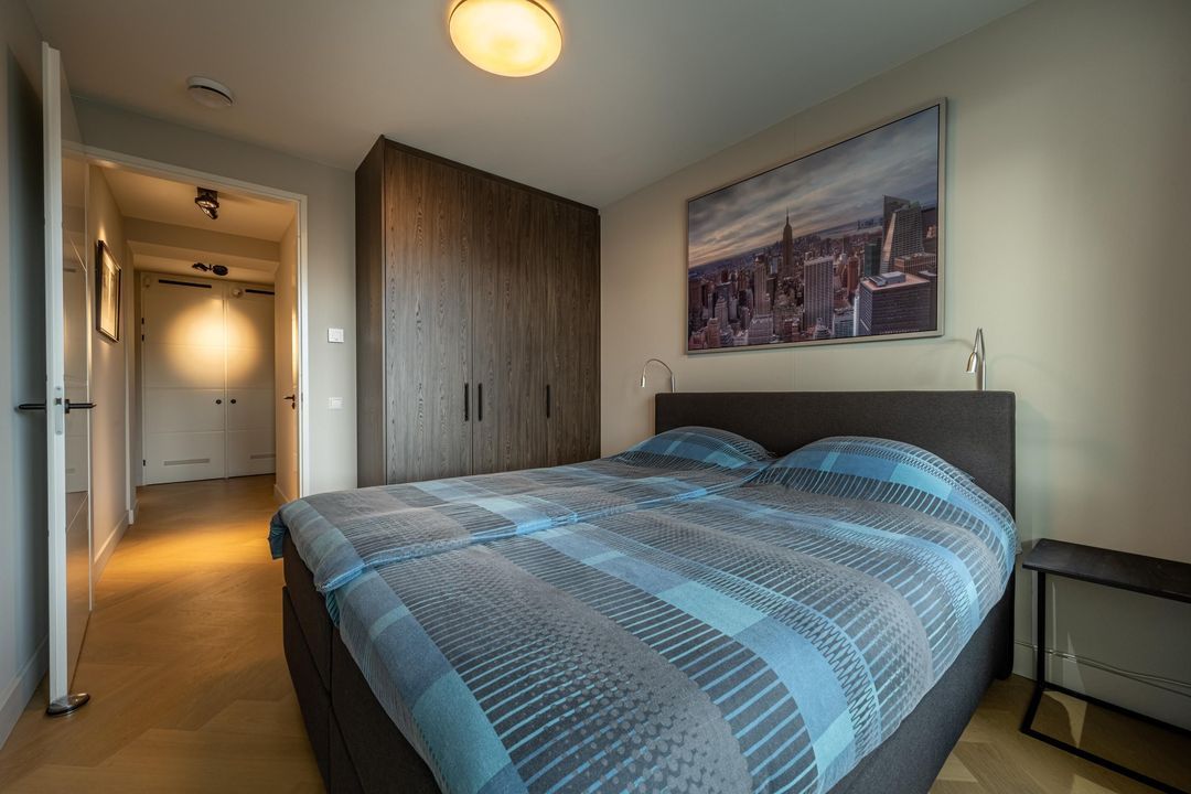 Het appartement beschikt over drie slaapkamers. Alle drie zijn voorzien van fraaie inbouwkasten en hebben toegang tot een van de twee balkons. De badkamer is modern en stijlvol, uitgerust met een inloopdouche met regenkop- en handdouche, ligbad, wastafelmeubel met dubbele kraan, tweede toilet en hoogwaardig tegelwerk. Verder is er een inpandige berging met opstelplaats voor wasmachine en droger, en extra bergruimte.