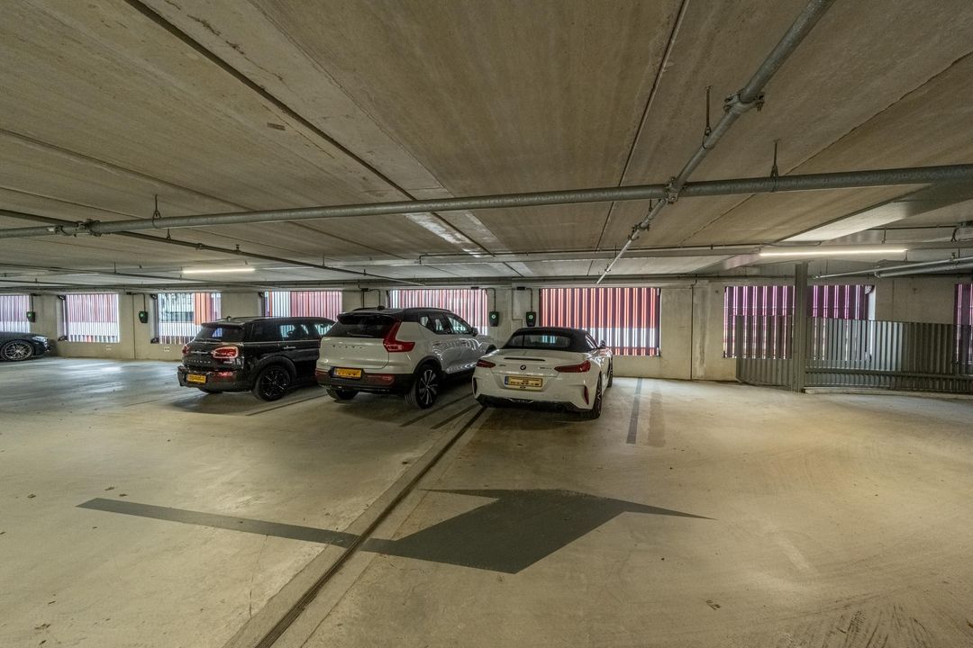 Bij het appartement hoort een externe berging (nr. 48 M) van circa 4 m² op de begane grond, voorzien van verlichting met bewegingsmelder. Daarnaast is er een een vaste parkeerplaats (nr. 669) in de afgesloten stallingsgarage op niveau 2, met een eigen Zaptec Pro-lader voor het opladen van een elektrische auto. De parkeerplaats wordt aangeboden voor € 50.000,-. k.k.. De Cooltower beschikt verder over een aparte fietsenstalling met voldoende plek voor (bak)fietsen, scooters en motoren.