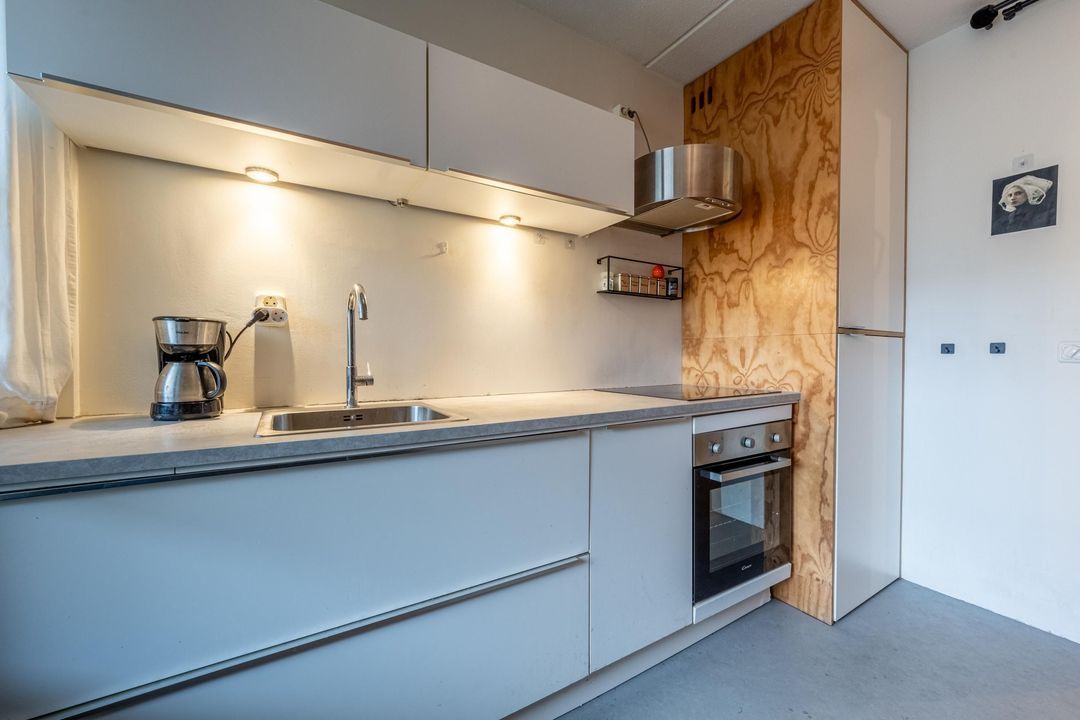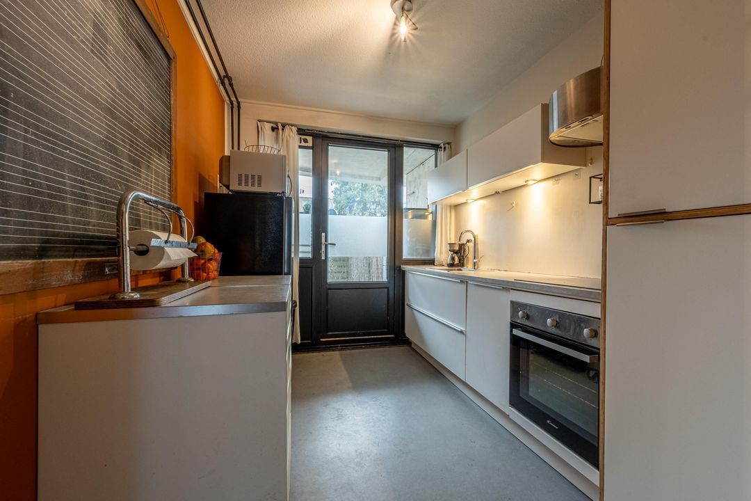 De keuken bevindt zich aan de achterzijde en heeft een deur naar de tuin. De keuken is compleet uitgerust met een inductiekookplaat, recirculatiekap, vaatwasser, oven en koel-vriescombinatie, en biedt daarnaast een handige opstelplaats voor de wasmachine.