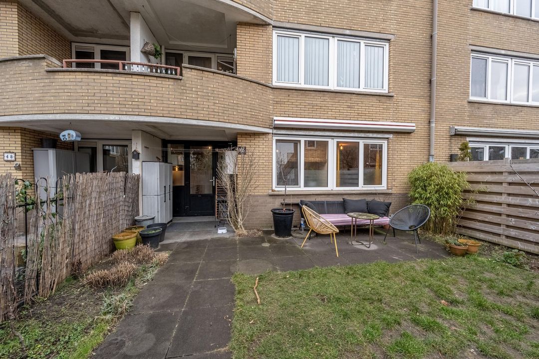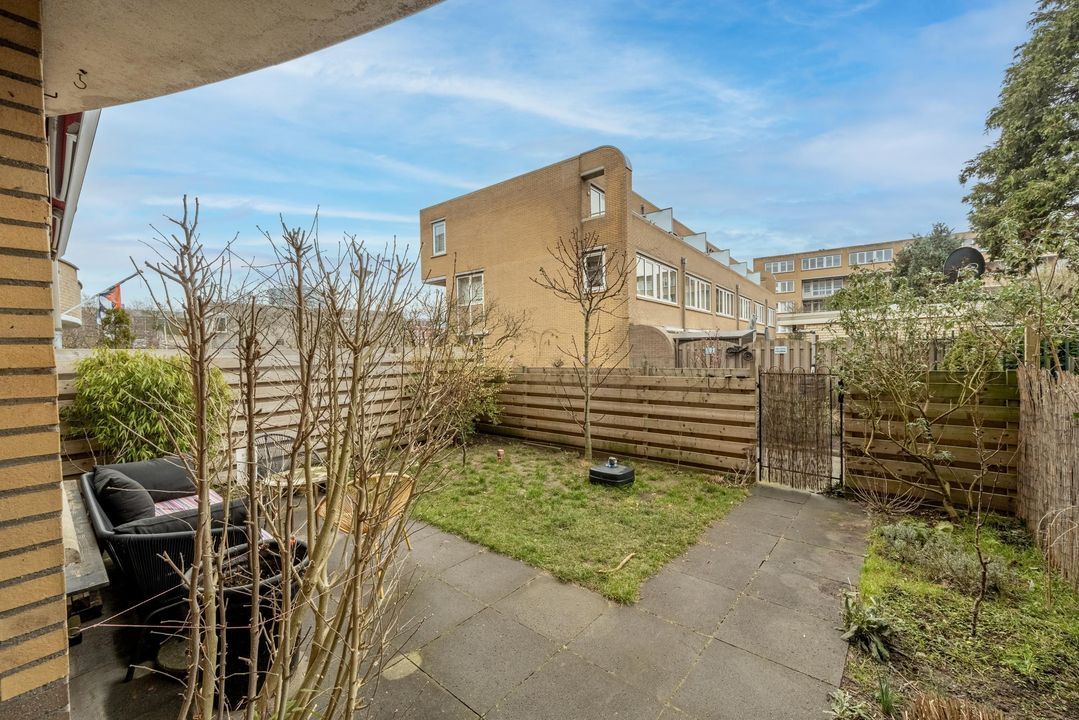 De zonnige achtertuin op het zuiden is een fijne plek om te ontspannen, met een combinatie van tegels, een gazon en volwassen beplanting. Of je nu de dag begint met een kop koffie in de ochtendzon of in de avond nog even buiten zit met een goed glas wijn, hier geniet je altijd van je eigen groene oase in de stad. Bovendien heb je via de achterom een handige extra toegang tot de tuin.