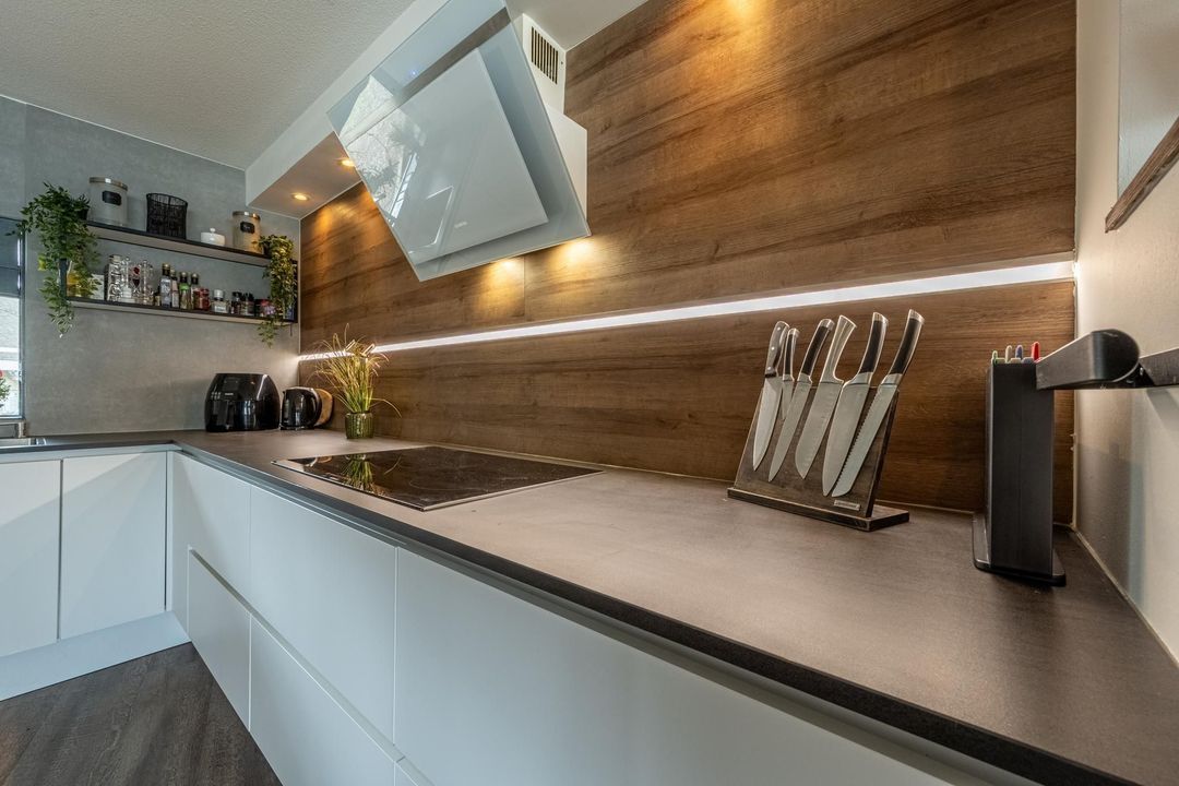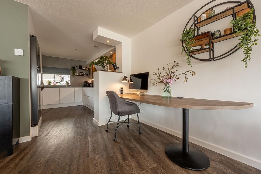 Binnenkomst bij eigen entree met een ruime hal die toegang biedt tot alle vertrekken. De woonkamer is een fijne, lichte ruimte dankzij de grote raampartijen. Hier creëer je moeiteloos een gezellige zithoek om te ontspannen en een royale eethoek waar je urenlang kunt tafelen met vrienden of familie. Tevens is er ruimte voor een thuiswerkplek. De royale open keuken grenst aan de woonkamer en is praktisch ingericht met alles wat je nodig hebt: een inductieplaat met 5 kookzones, moderne afzuigkap, combioven, Amerikaanse koelkast, vaatwasser, koffiehoek, carrouselkast en voldoende opbergruimte.