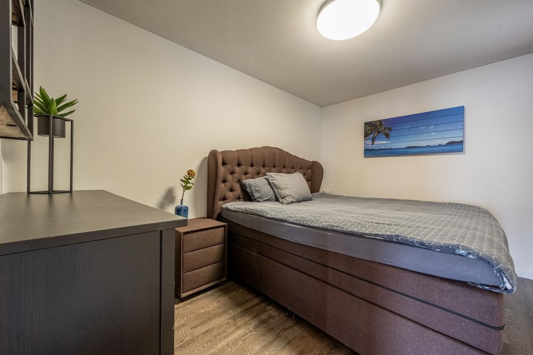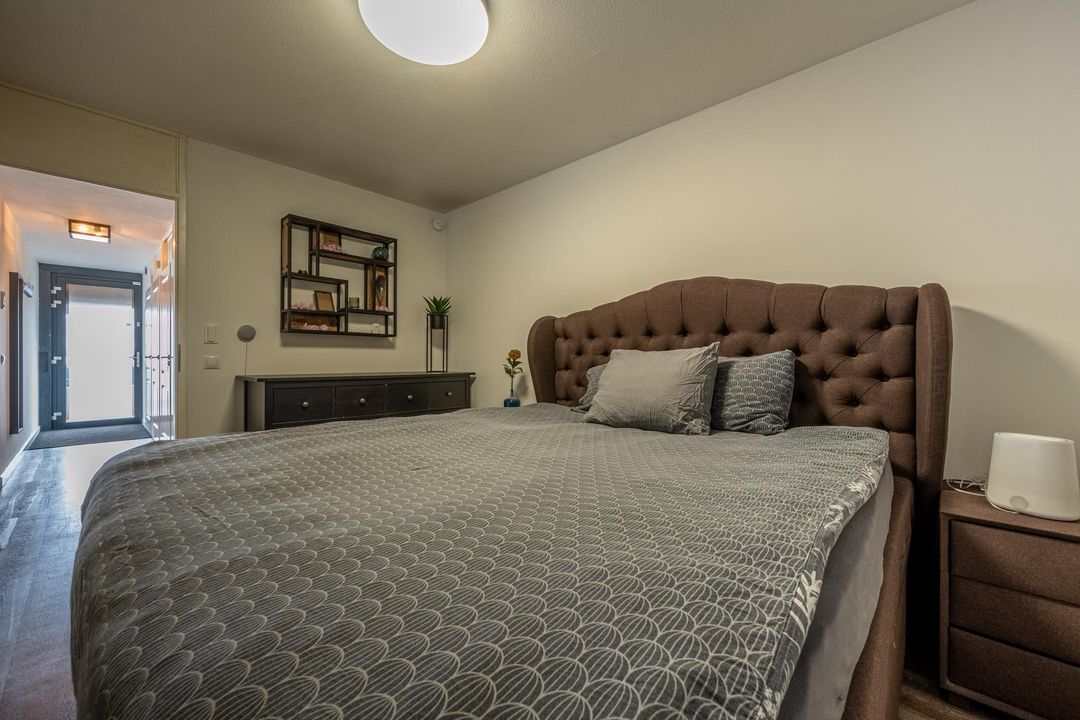 Aan de rustige achterzijde bevinden zich de twee slaapkamers. De master bedroom is van goed formaat en biedt voldoende plek voor een tweepersoonsbed en een kledingkast. De tweede kamer is veelzijdig te gebruiken: ideaal als thuiswerkplek, kastenkamer of kinderkamer.