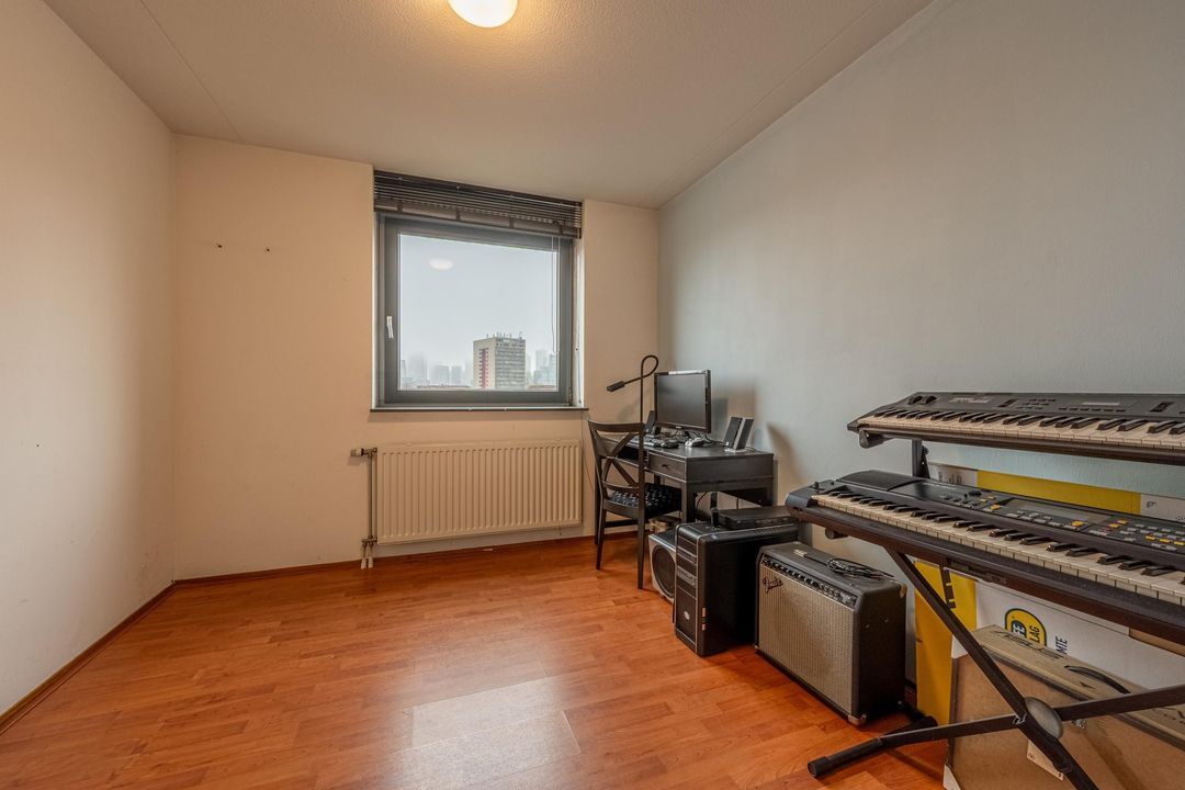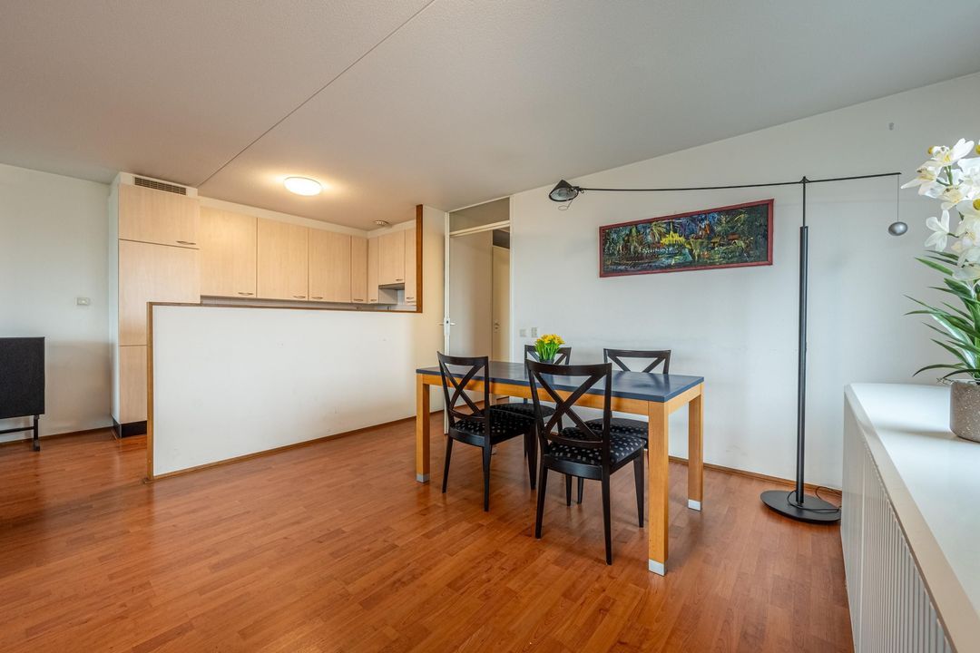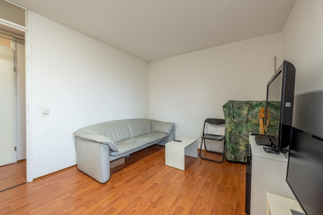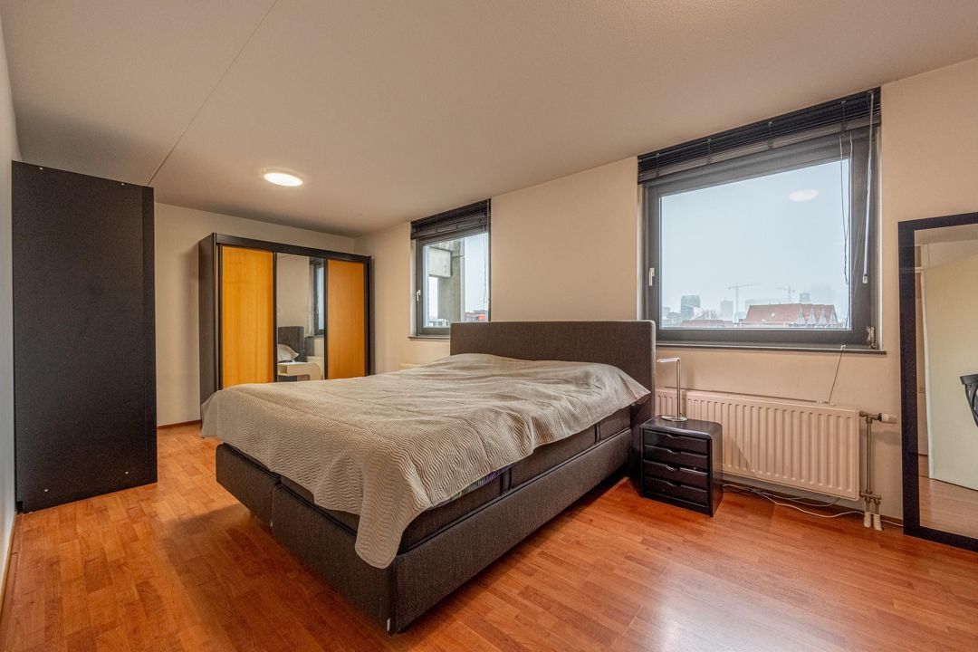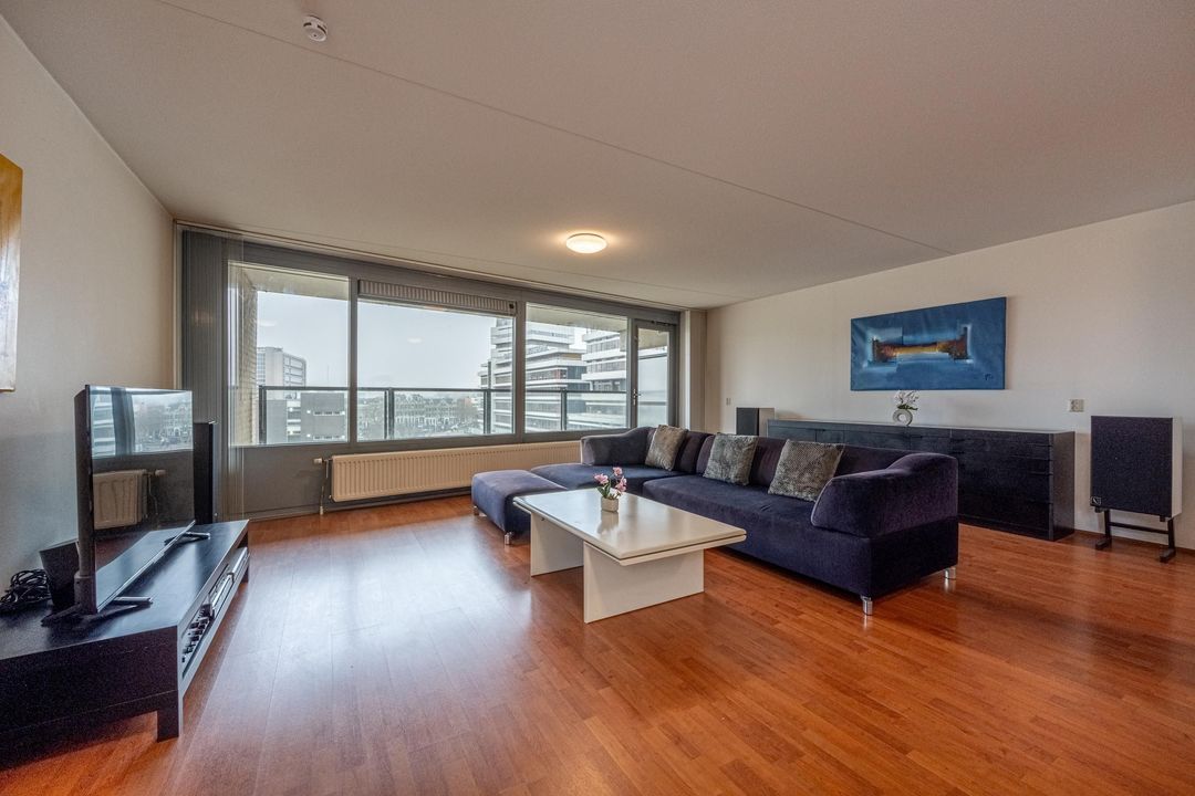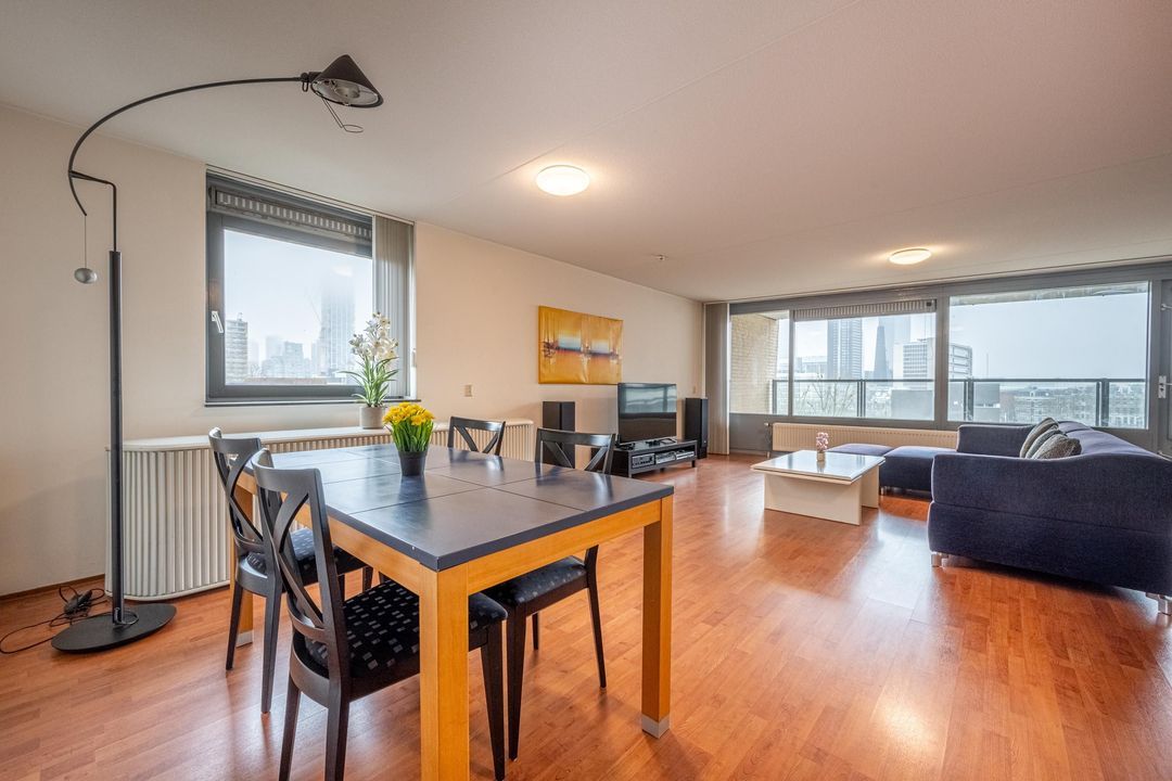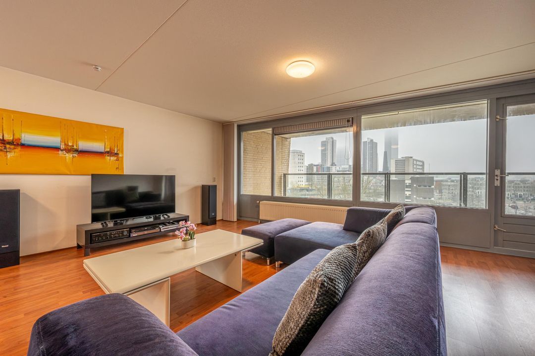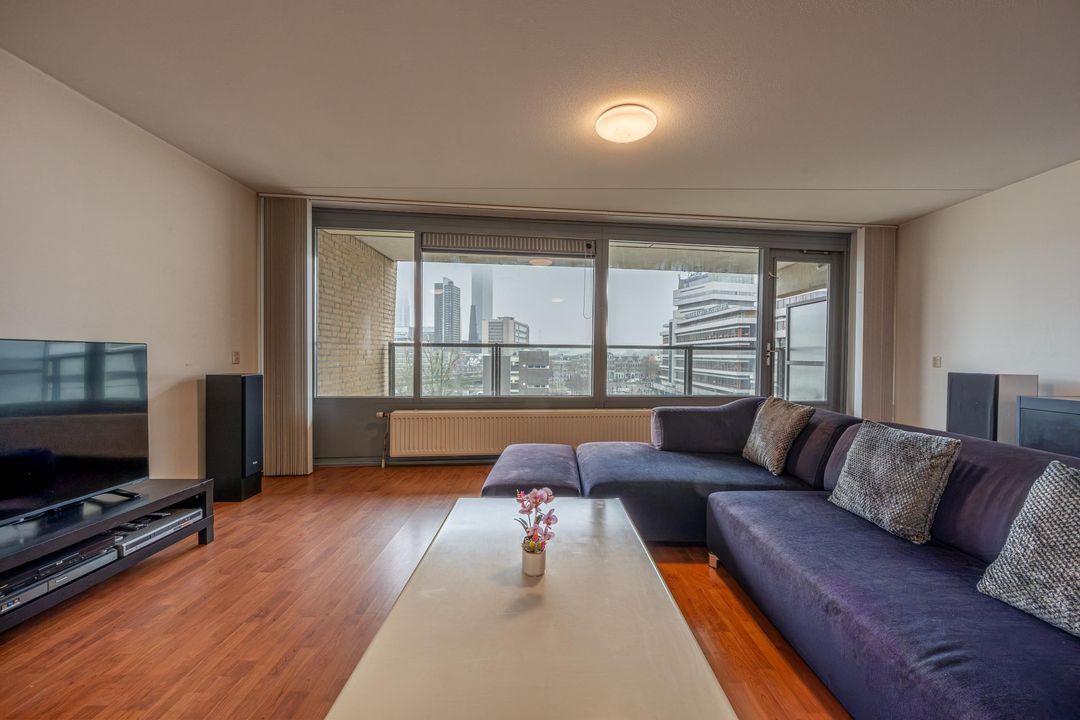 De woonkamer ligt aan de achterzijde van de woning en heeft grote raampartijen, waardoor er veel daglicht binnenkomt. Vanuit de woonkamer is er toegang tot het balkon. Het balkon ligt op het zuidwesten en biedt een heerlijke plek om van de middag- en avondzon te genieten, met een prachtig uitzicht over de skyline van Rotterdam.