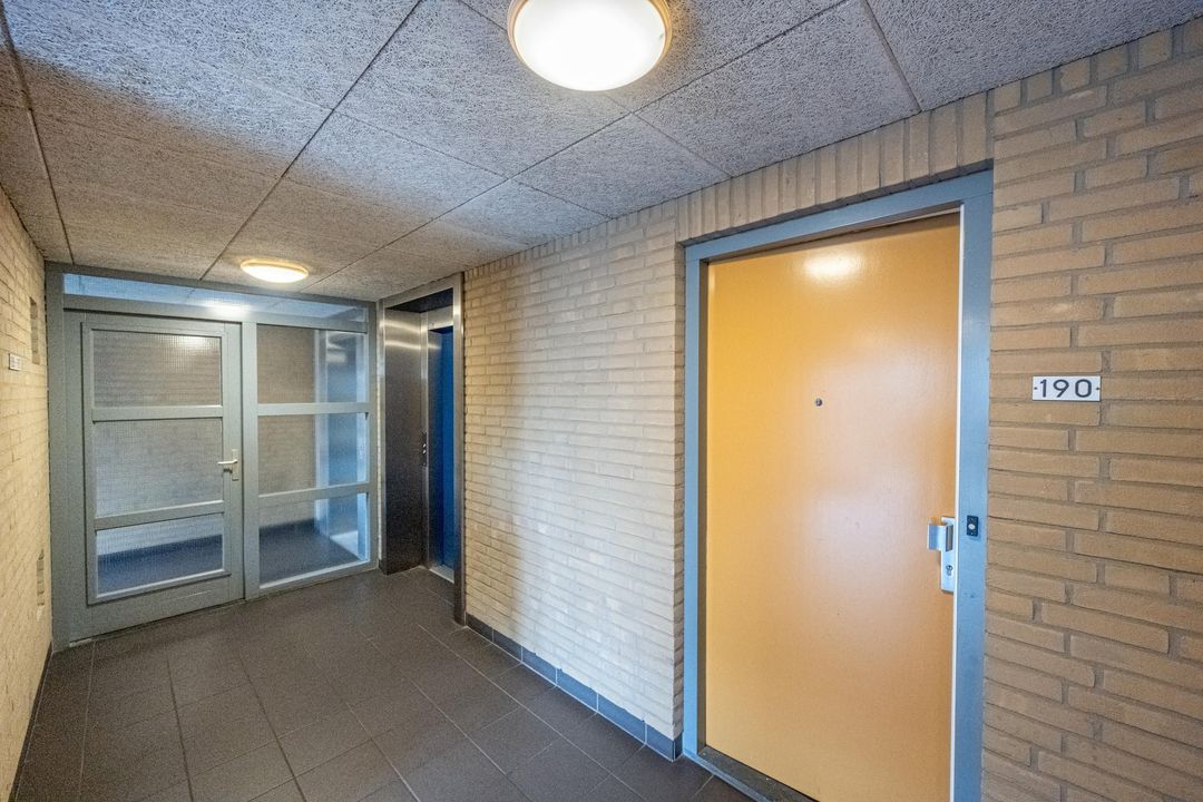 Afgesloten centrale entree met bellentableau, intercom en brievenbussen. Vanuit de entree is er toegang tot het trappenhuis en de lift.