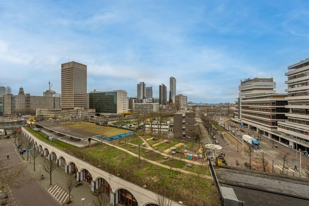 Midden in het bruisende centrum van Rotterdam met alle voorzieningen op dichtbij. Op loopafstand liggen de Meent, Coolsingel, koffiebars en winkels. Op 50 meter afstand is een tramhalte, ook centraal station is vlakbij. Voor de dagelijkse boodschappen ligt de Albert Heijn om de hoek en ook de markt op dinsdag en zaterdag is eenvoudig te bereiken. De Hofbogen met diverse horeca, mode- en designwinkels liggen eveneens dichtbij. Daarnaast wordt er gewerkt aan het langste dakpark van Rotterdam, dat straks direct voor de deur ligt.