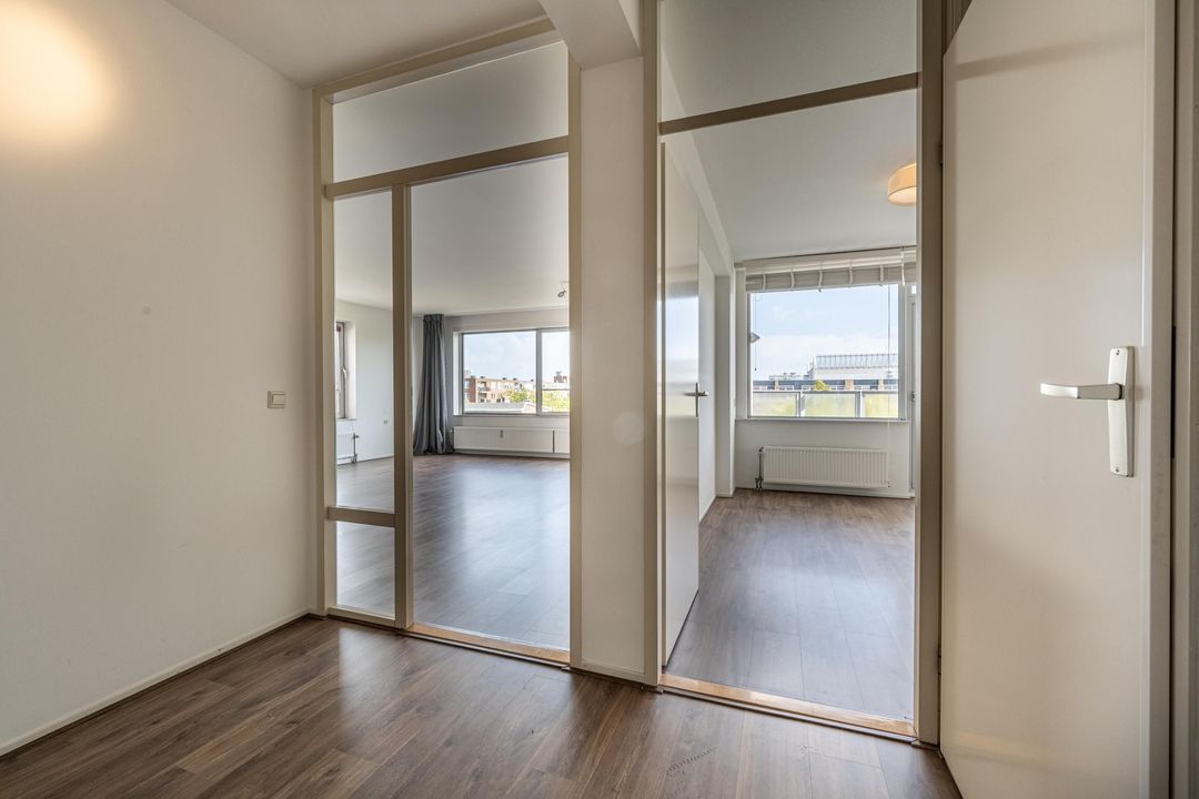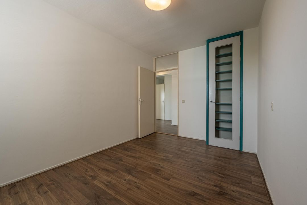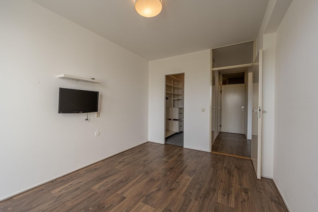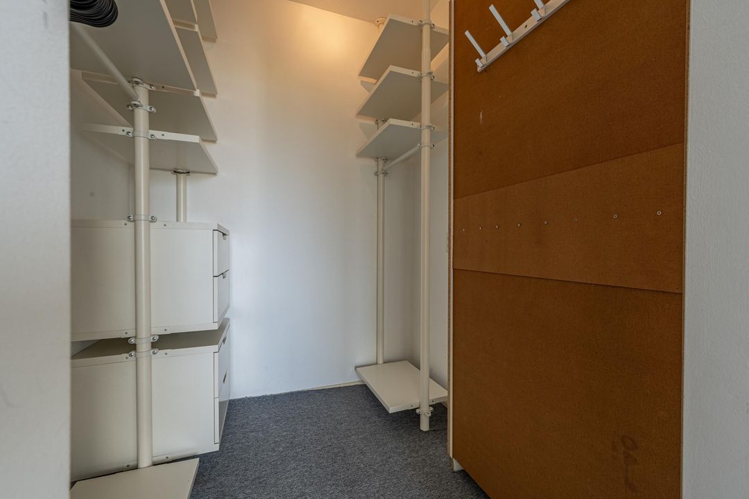 De tweede slaapkamer bevindt zich aan de achterzijde en grenst direct aan het balkon. Dankzij de grote raampartij is de kamer bijzonder licht. De slaapkamer beschikt over een inloopkast, die voorheen als berging werd gebruikt. Deze ruimte kan eenvoudig weer als berging worden ingericht of benut worden als royale kledingruimte. Ook is het mogelijk de wand tussen de slaapkamer en de woonkamer te verwijderen, waardoor een extra grote leefruimte ontstaat.