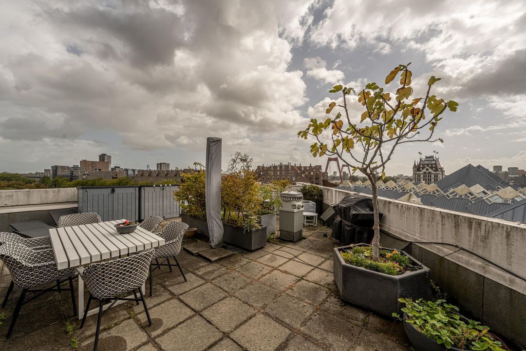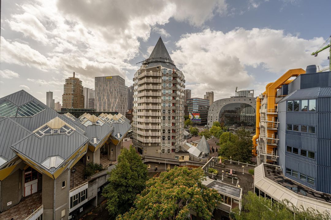 Een groot pluspunt is het gezamenlijke dakterras dat toegankelijk is voor alle bewoners van het complex. Hier heb je een fantastisch uitzicht op de Markthal, de Kubuswoningen en de skyline van Rotterdam. Een ideale plek om samen te komen, te barbecueën of gewoon in alle rust van de zon te genieten.