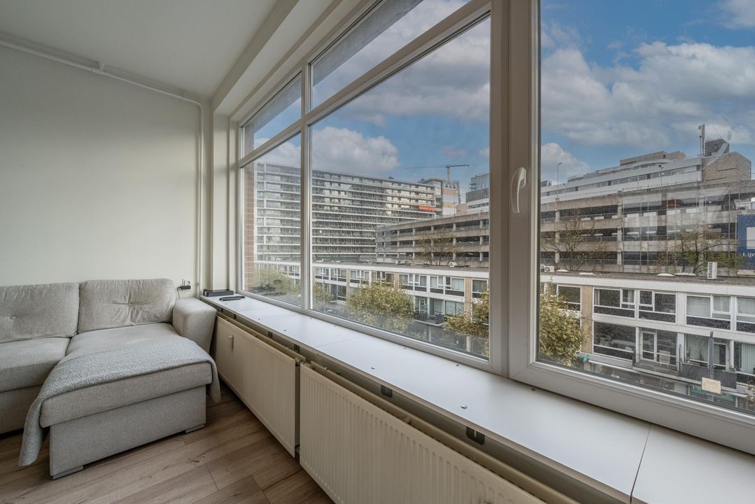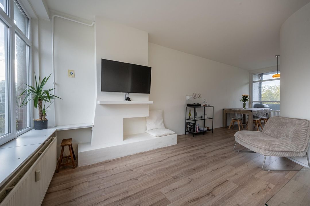 De woonkamer is een heerlijke, lichte ruimte waar direct een gevoel van thuiskomen heerst. Dankzij de grote raampartij aan de voorzijde valt er volop daglicht naar binnen. De diepe vensterbank kan bovendien gebruikt worden als extra zitplek – perfect om met een kop koffie de stad voorbij te zien komen.