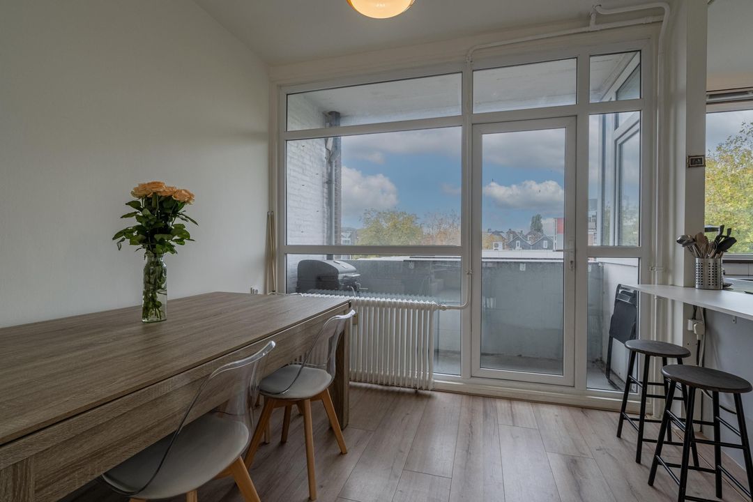 De open keuken vormt samen met het eetgedeelte het hart van het appartement. De keuken is in 2025 volledig vernieuwd en uitgevoerd in een moderne L-opstelling met een leuk barretje waar je gezellig kunt aanschuiven.