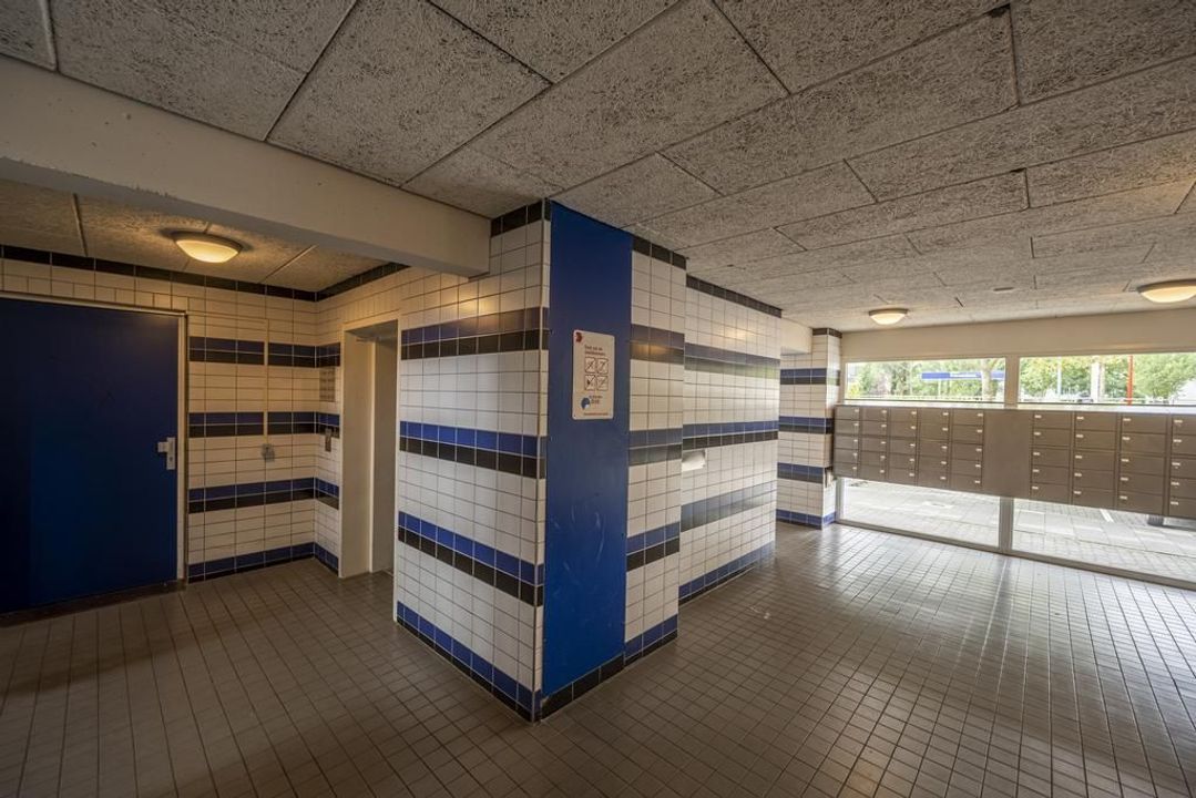 Ruime afgesloten entree met brievenbussen, bellentableau met videofoon en toegang tot de berging, de lift en het trappenhuis.