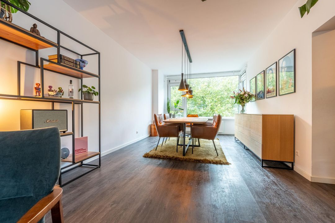 Via de entree kom je binnen in de hal met meterkast, een modern toilet en een handige hobbyruimte of thuiswerkplek. De woonkamer van bijna 40m² is een lichte, doorzonkamer met een riante zithoek en plek voor een ruime eettafel, ideaal om met het hele gezin of een groep vrienden te genieten van gezellige maaltijden. Vanuit de woonkamer heb je toegang tot een balkon aan de voorzijde met uitzicht over de Mariniersweg.