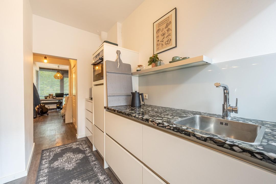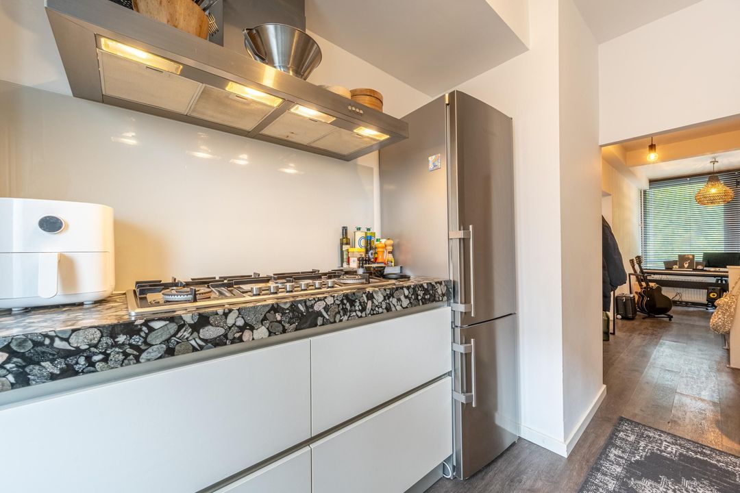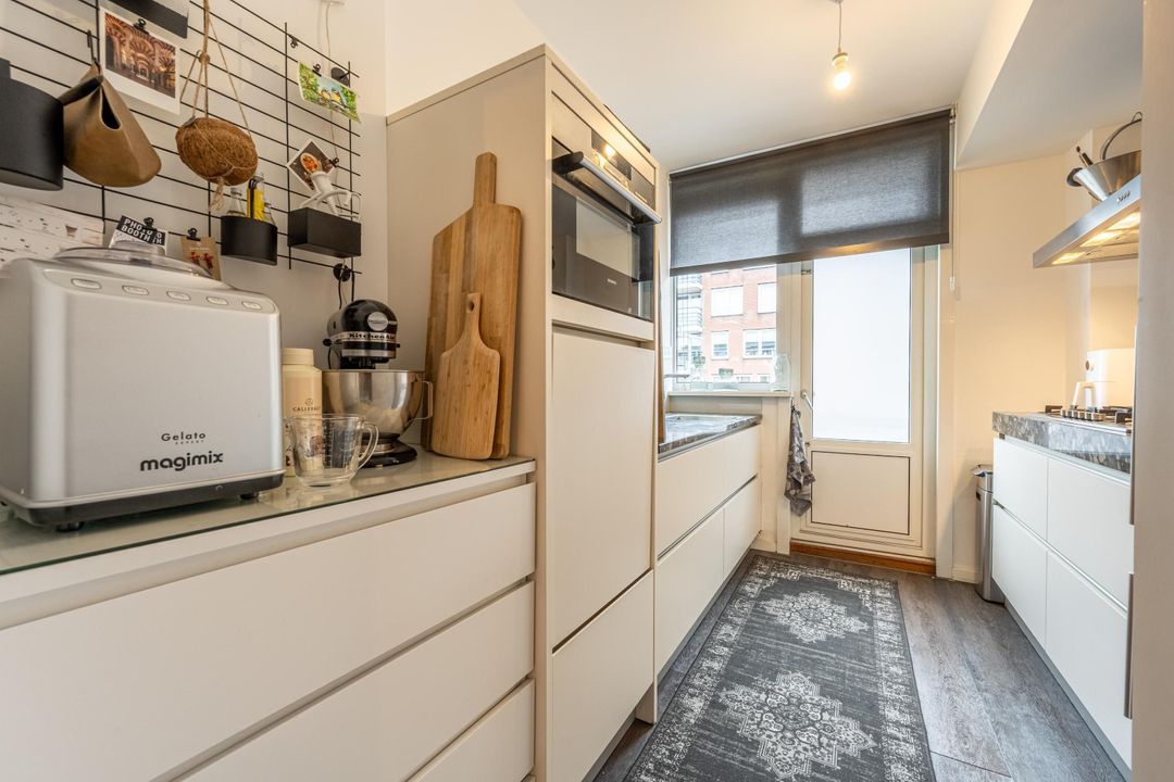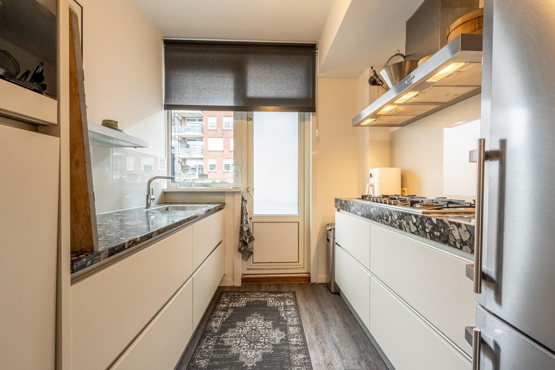 De keuken, gelegen aan de rustige achterzijde van het appartement, is volledig uitgerust voor de kookliefhebber. Met een 6-pits gasfornuis, afzuigkap, combi-oven, vaatwasser, koel-vriescombinatie en koffiecorner ben je van alle gemakken voorzien. Ook hier is er directe toegang tot een tweede balkon aan de achterzijde, waar je kunt genieten van de rust en privacy.