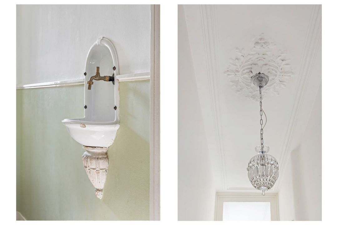 De hal is tevens voorzien van een separaat toilet, stijlvol afgewerkt in de kenmerkende klassieke sfeer van de woning.