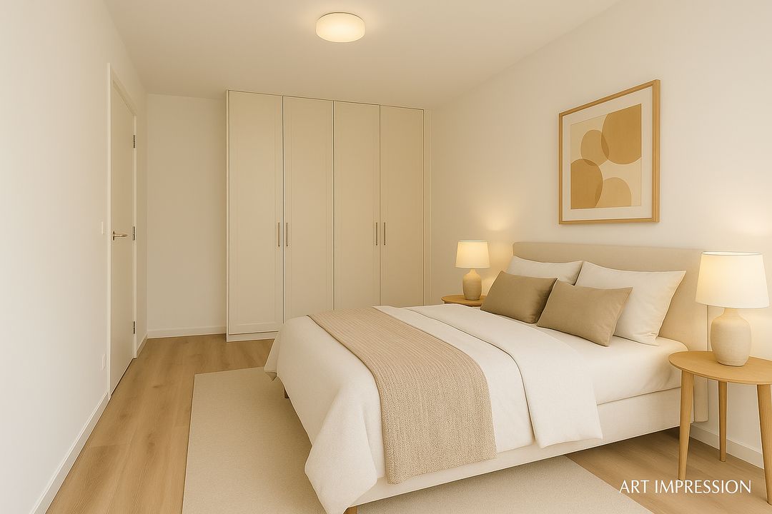 Alle slaapkamers zijn voorzien van een doorgelegde laminaatvloer en vloerverwarming, die – net als in de rest van het appartement – zorgt voor extra wooncomfort.